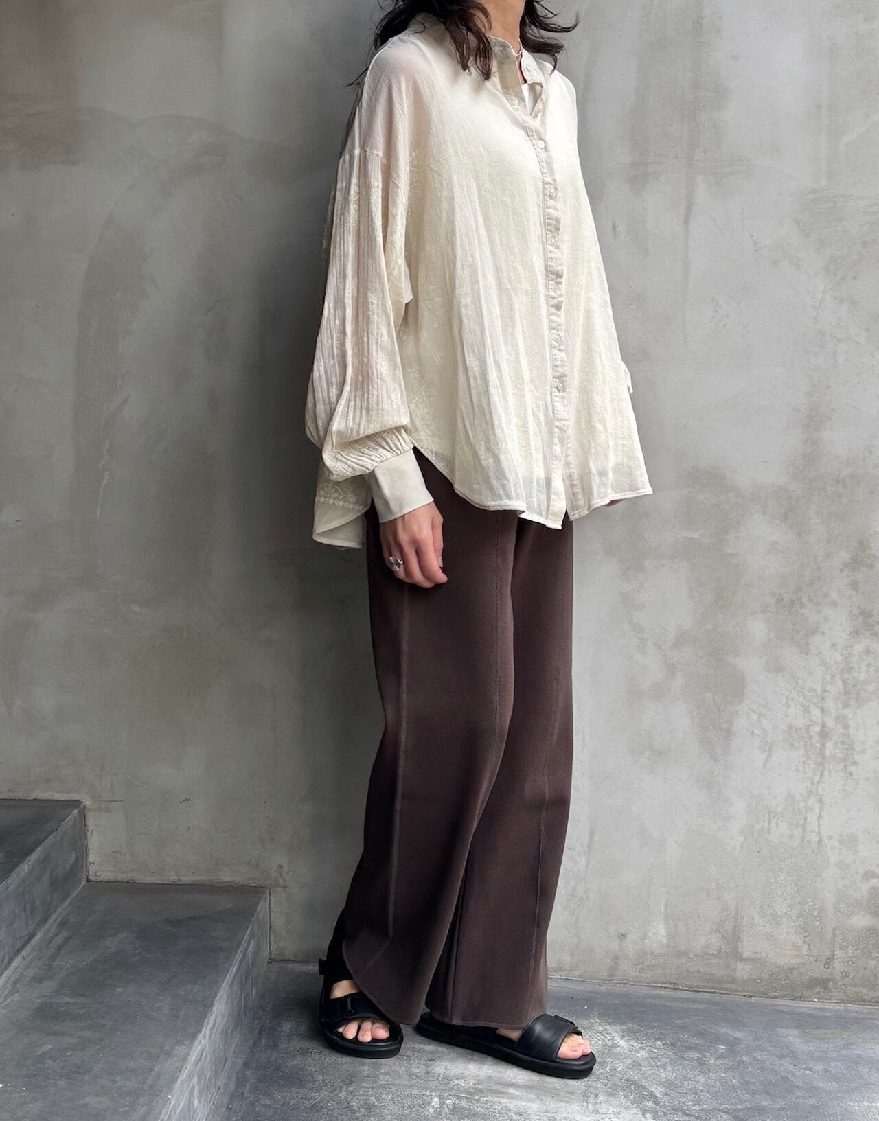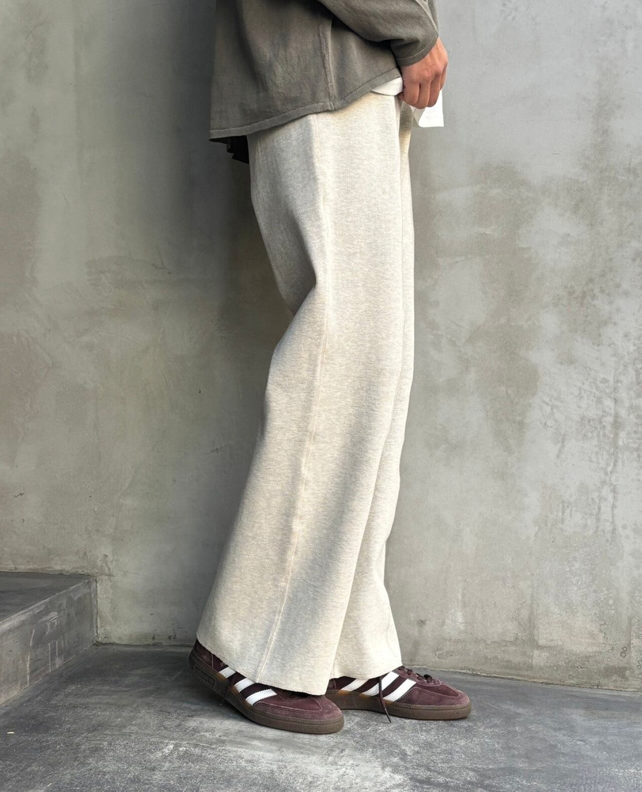 ご要望のお声が多かったミラノリブのセミフレアーパンツ。しっかりとした伸縮性のあるニット生地を使用しています。穿き心地が良く、動きやすさも抜群です。カラーはオートミール・杢グレー・ダークブラウン・ブラックの4色になります。