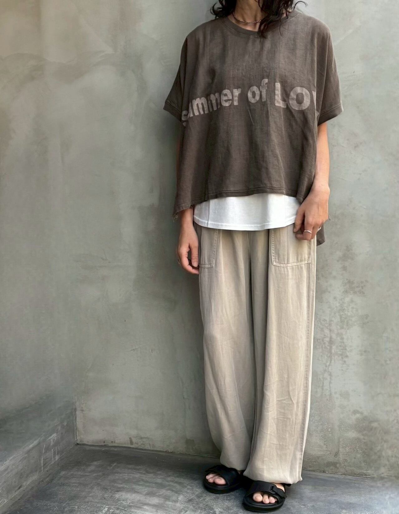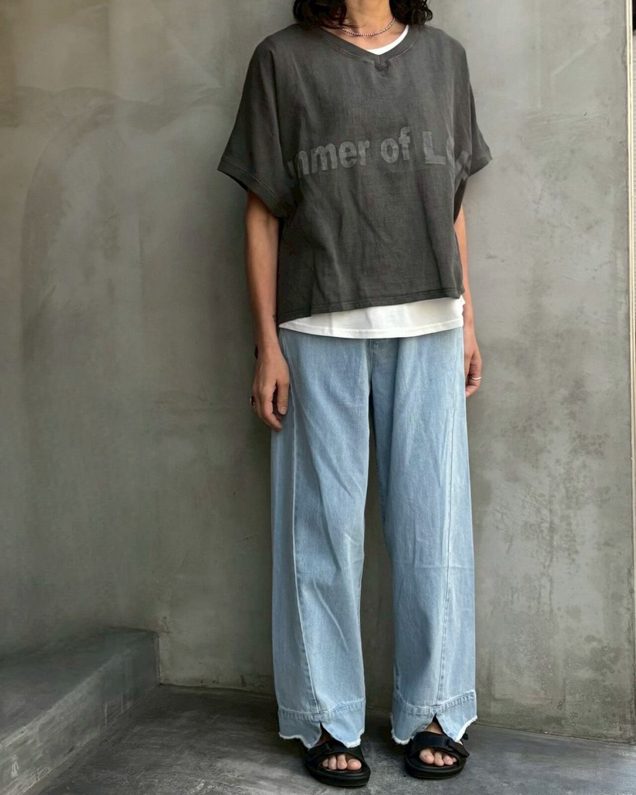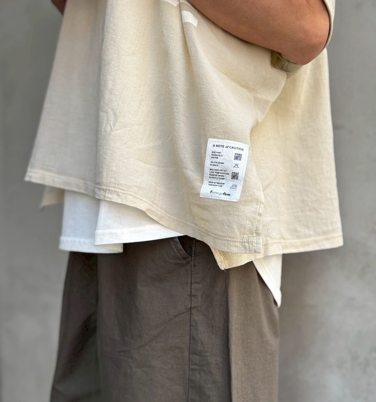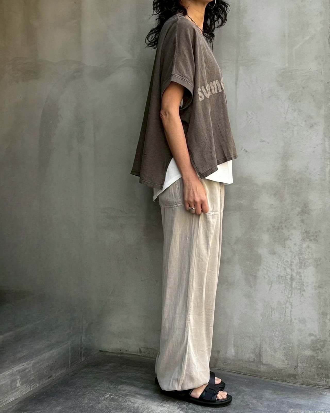 製品染めの商品は独自の色と自然な風合いを持たせるため縫製後に手染めにより加工を施しております。加工製品ですので多少の色ムラ、加工感はございますのでご了承下さい。