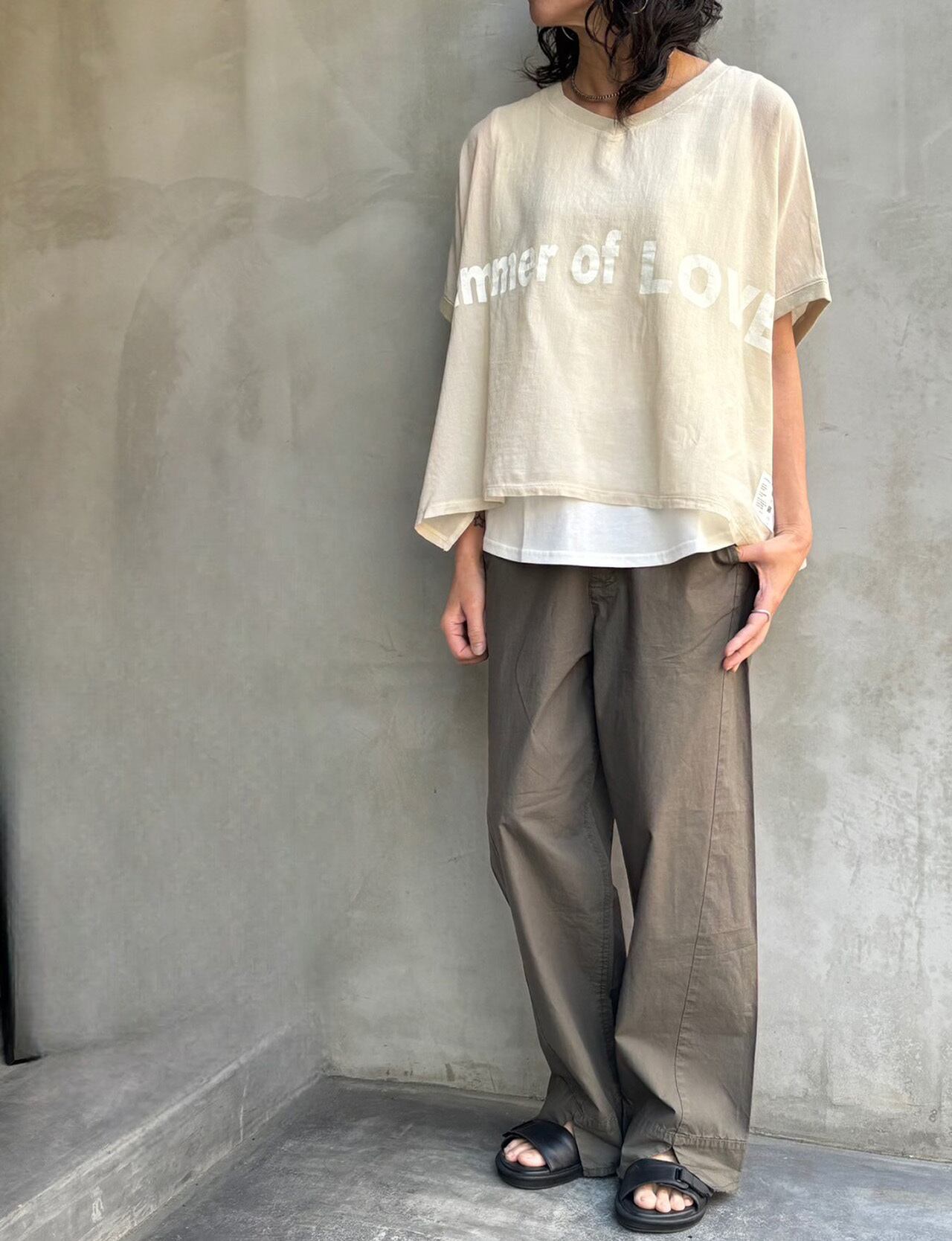 程良い透け具合のシアーポンチョシャツ。これからの暑くなる季節にイチオシのアイテムです。定番の天竺タンクトップ(170009)(170010)との重ね着がおすすめです。カラーはオフベージュ、イエロー、ブラウン、チャコールの4色展開になります。