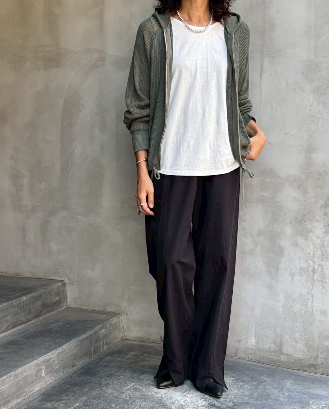 製品染めの商品は独自の色と自然な風合いを持たせるため縫製後に手染めにより加工を施しております。加工製品ですので多少の色ムラ、加工感はございますのでご了承下さい。