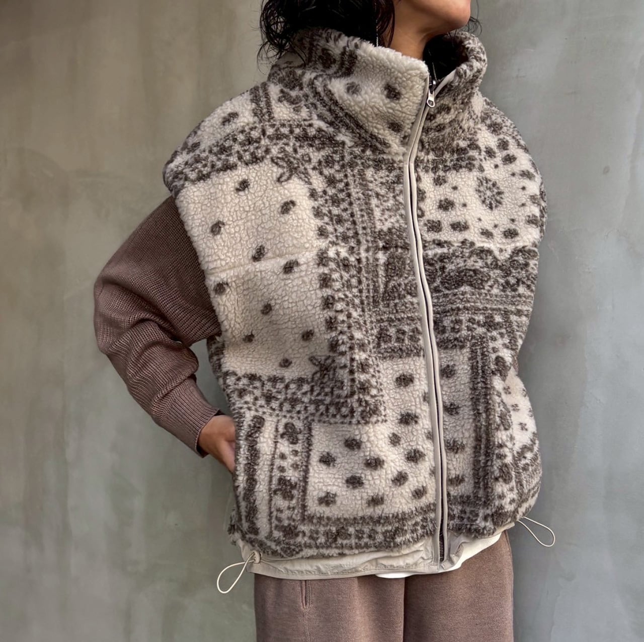 バンダナ柄ボアリバーシブルベスト 2色