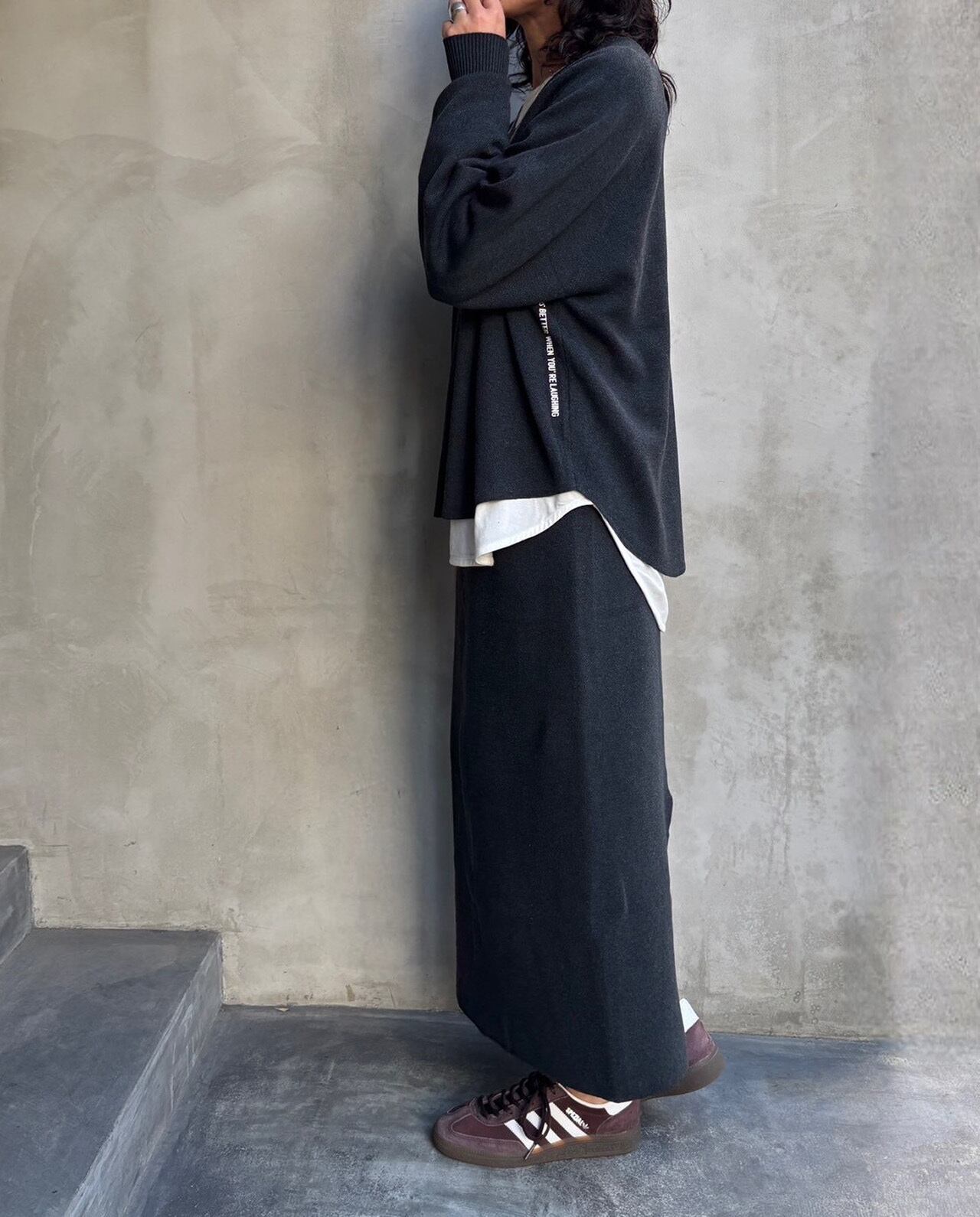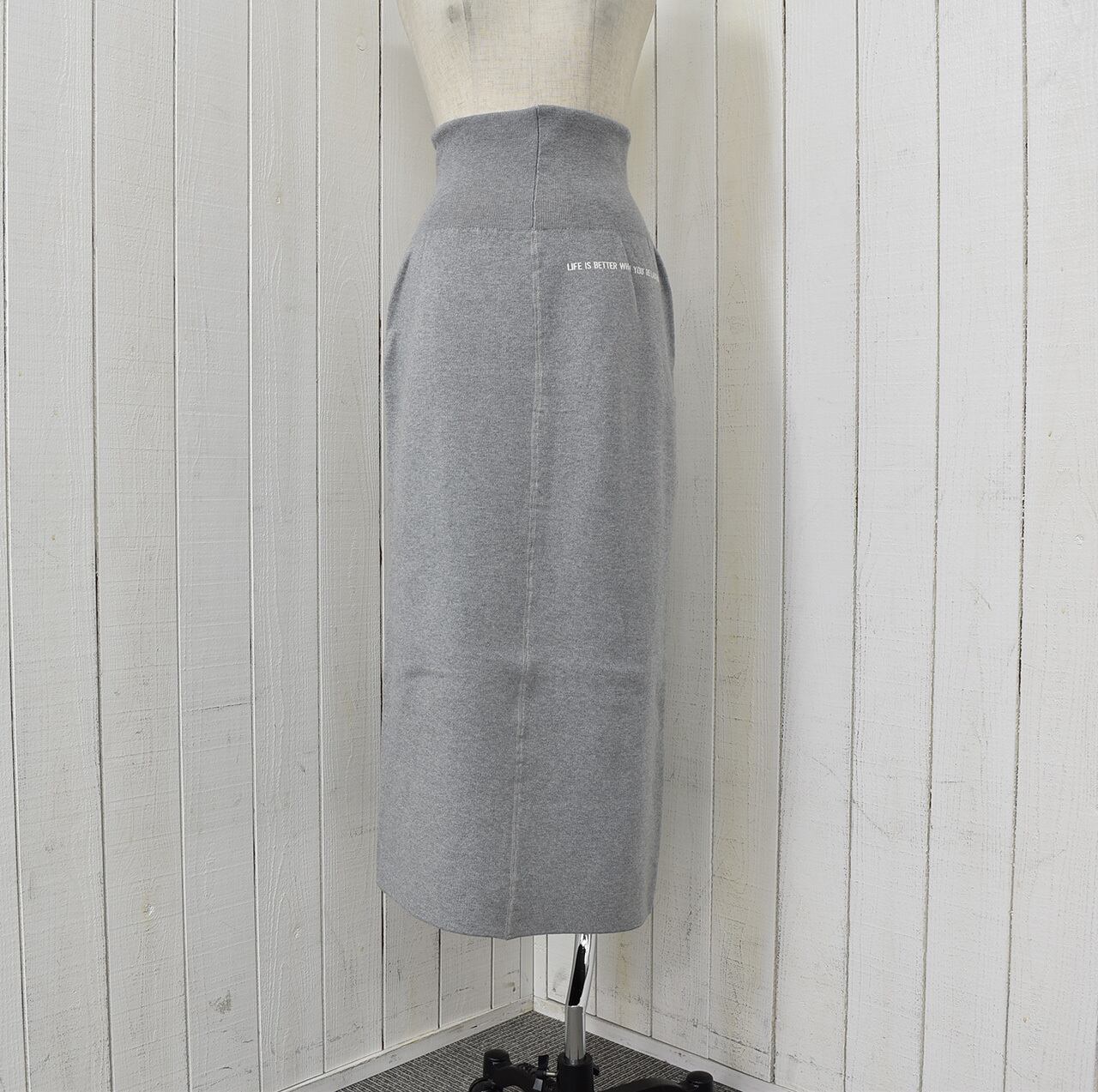 コットン×アクリル素材のふんわり柔らかいニットタイトスカート。窮屈さもなく、物足りなさもない究極の履き心地になっています。ウエストはリブを長くしそのままでも二つ折りでも着用できます。前にはチラっと見えるさりげないロゴ入り。同素材のVネックニットとセットアップで着ていただけます。カラーはサンド、モカブラウン、杢グレー、チャコールの4色になります。