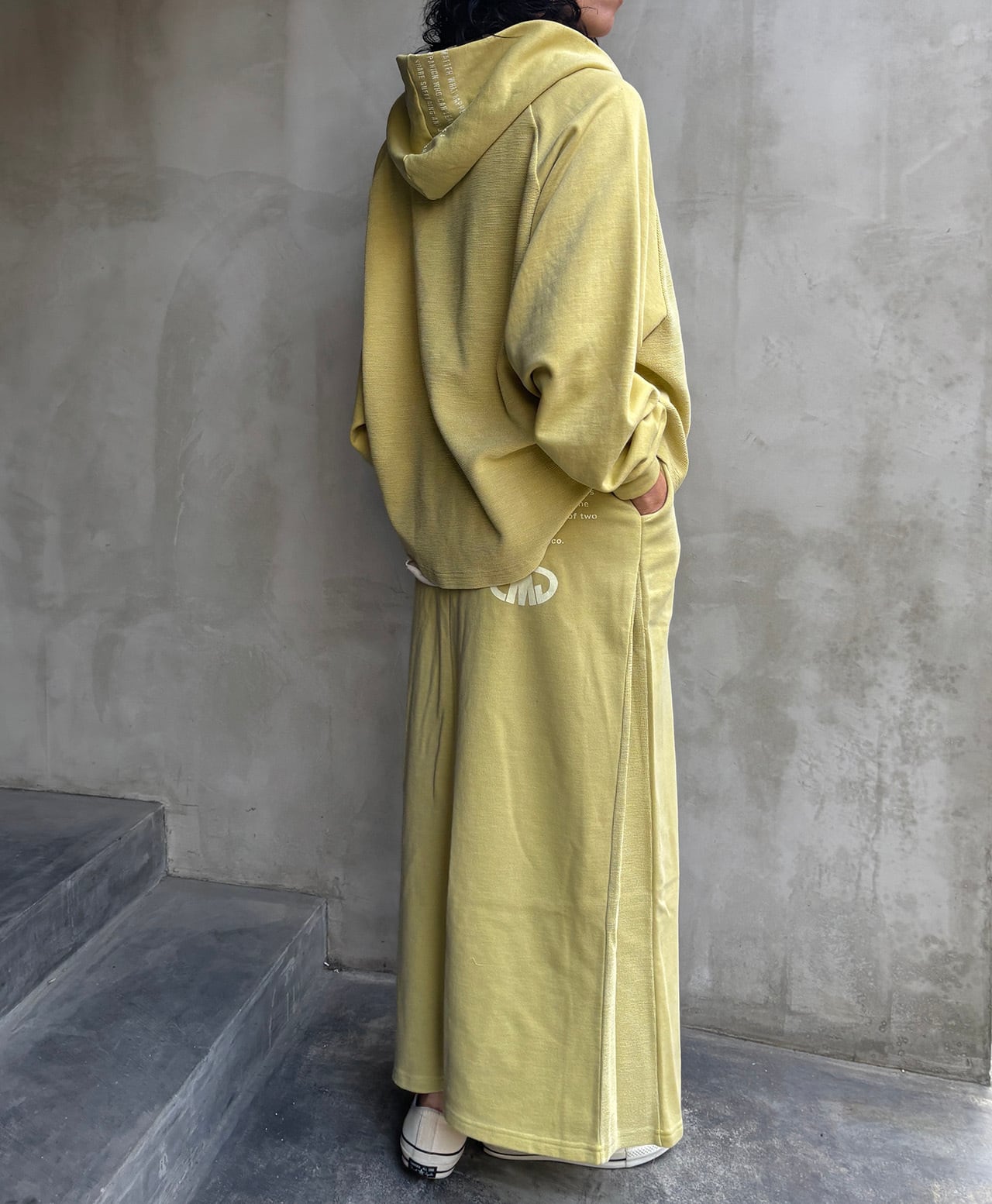 春らしい素材のスラブのハーフジップパーカーです。スウェットよりやや薄い素材ですので長いシーズン着ていただけます。前の裾にブランドパッチを付け、フードにロゴをプリントしています。ジップを少し開けて軽やかなスタイルがおすすめです。カラーはオフ、ライトイエロー、スモーキーピンク、チャコールの4色になります。
