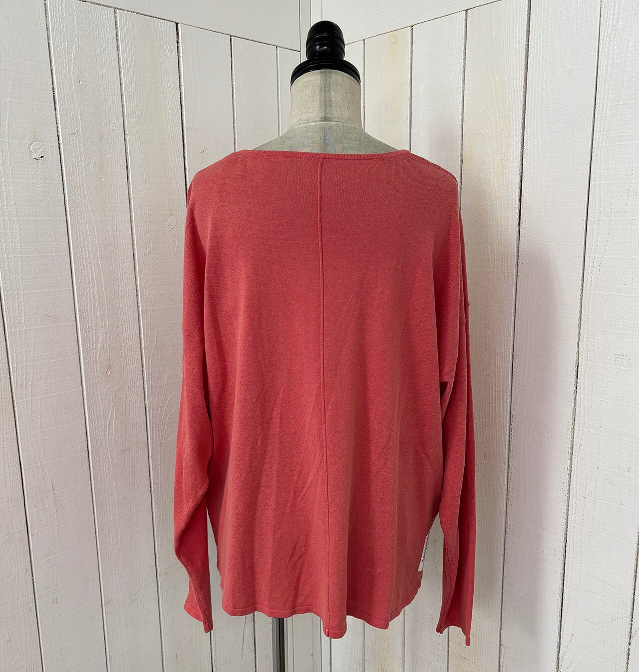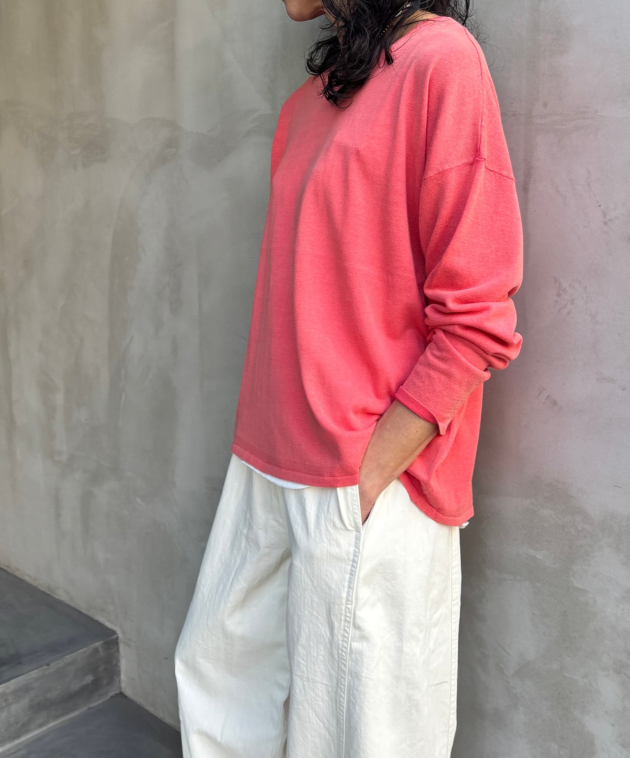 カットソーのロンTよりも女性らしい柔らかい雰囲気のニットロンTです。コットン素材で薄手なので、春から夏にかけて長いシーズンで着用可能です。同じ形のロゴタイプもございます。カラーはオフ、イエロー、レッドピンク、ブルー、ブラックの5色展開になります。