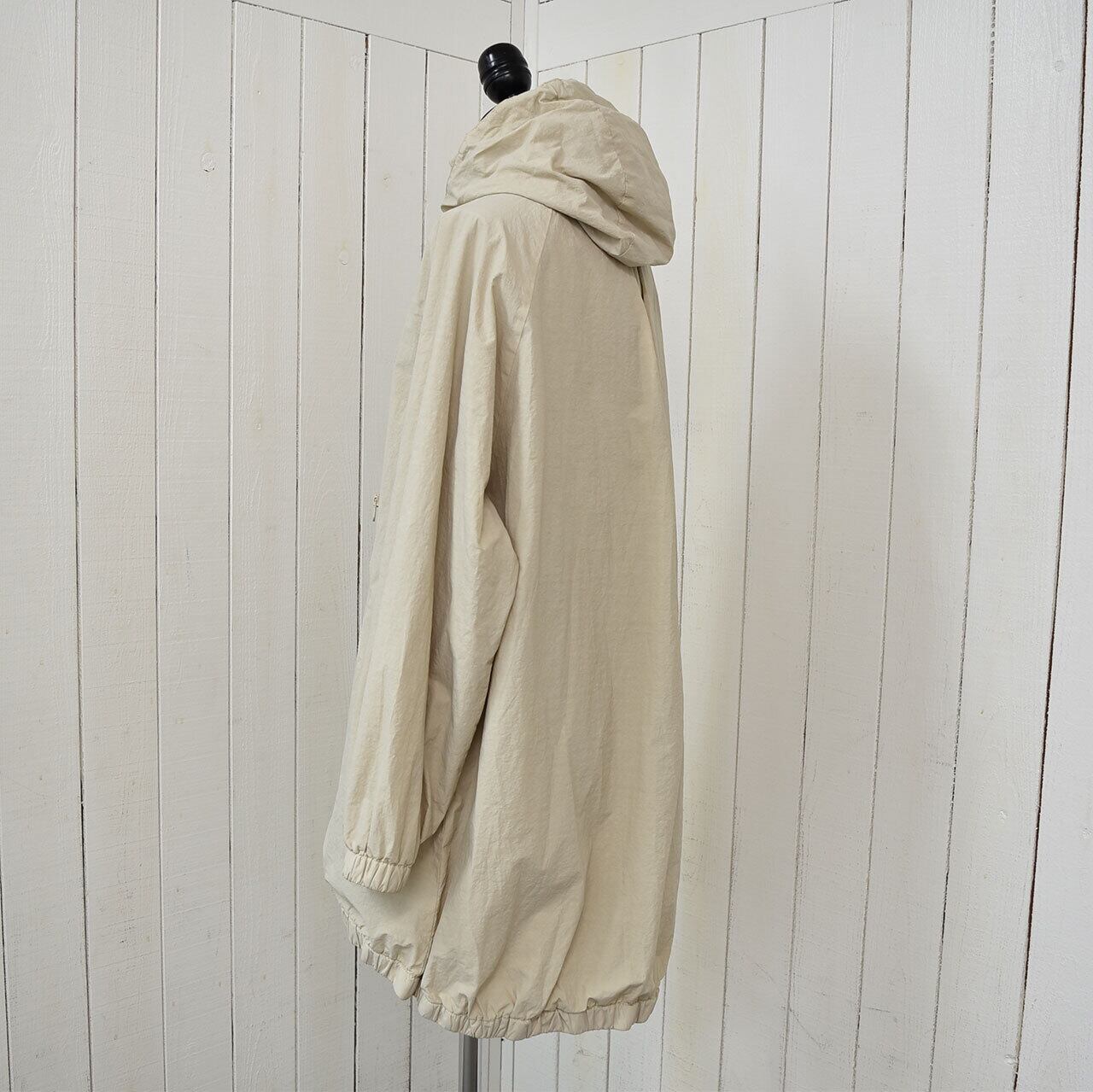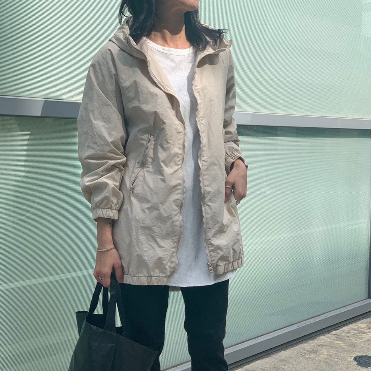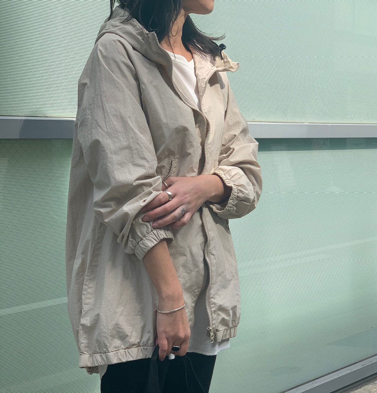 日常使いにぴったりなナイロンフードブルゾン。裏地は同色のメッシュがついていて、とても軽量でタフにお使いいただけます。お尻が隠れる丈で裾はドロストになっていますのでふんわりと丸みのあるシルエットに!ゆとりのあるサイズ感なので厚手のインナーも着ていただけます。