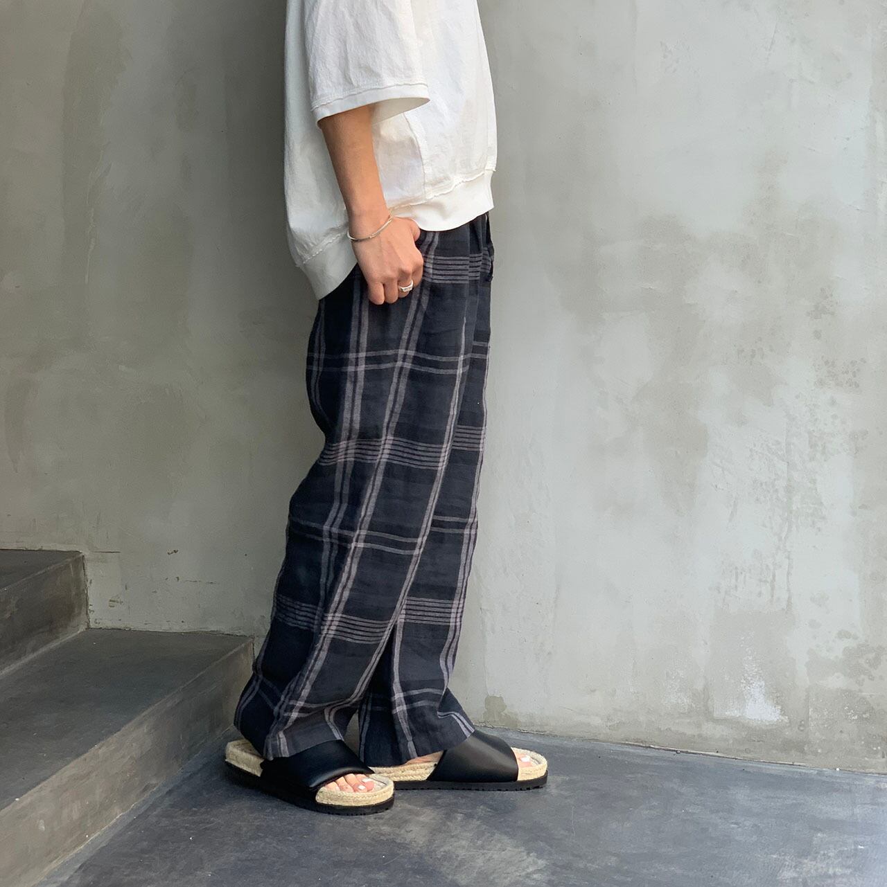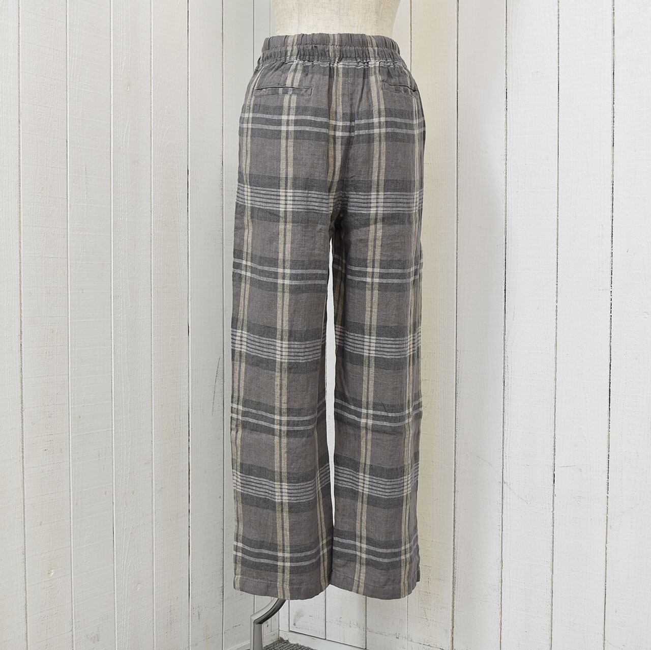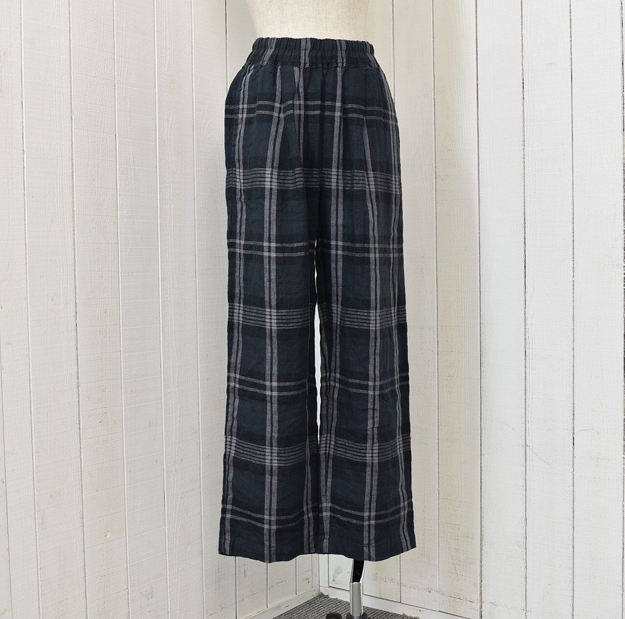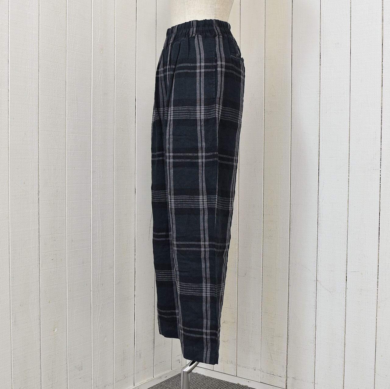 リネンチェックテーパードパンツ 2色