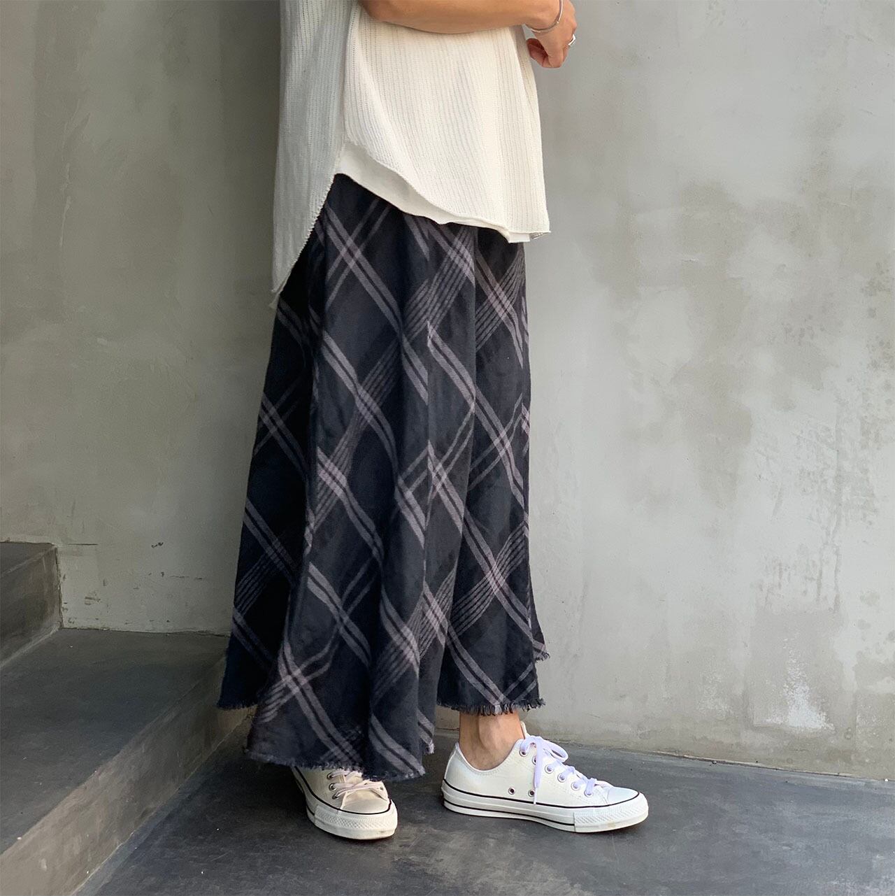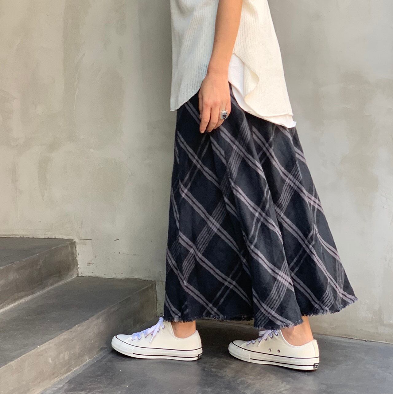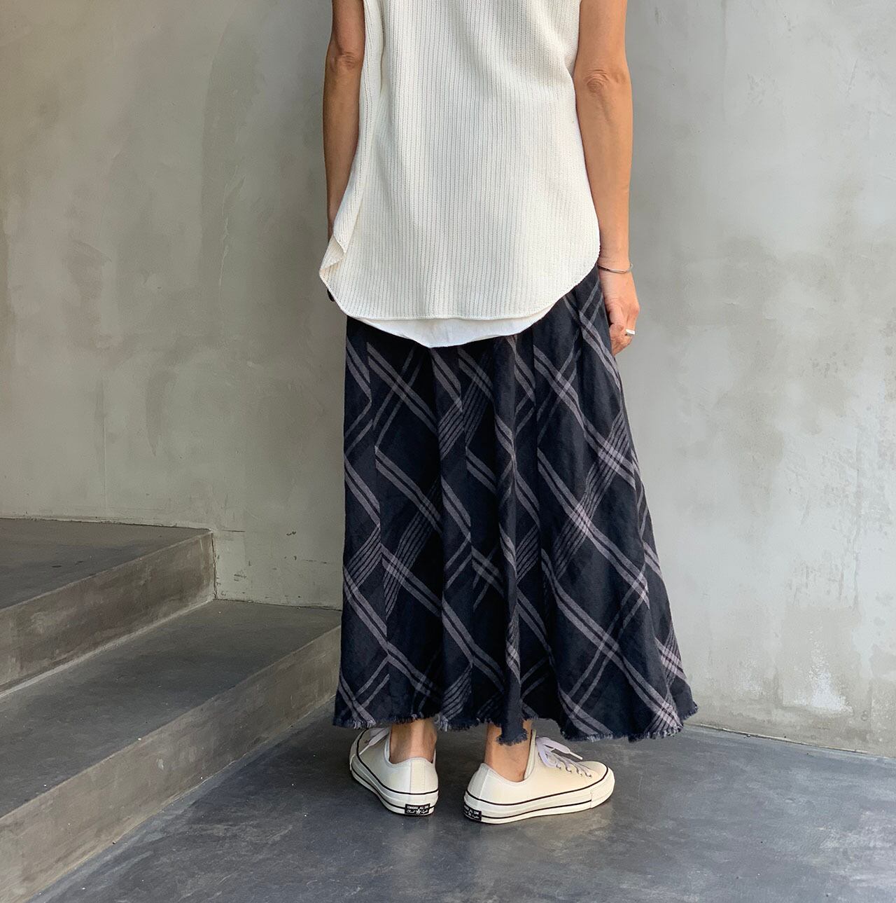 ヒップ周りがスッキリと見えるシルエットになっていて、裾のフリンジが涼しげで良いアクセントになっています。
