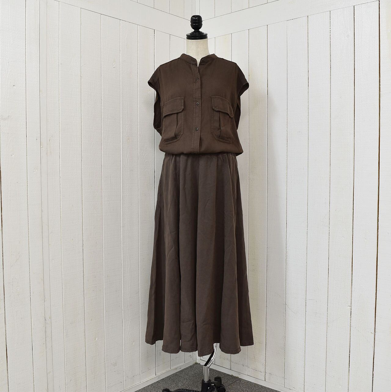 しなやかな素材のテンセルロングスカート。飽きの来ないデザインで幅広いコーディネートが楽しめますので1枚持ってると重宝するアイテムです。ウエストはゴム仕様で内側に付いた紐での調整可能。同素材のブラウスでセットアップとしてもお楽しみ頂けます。