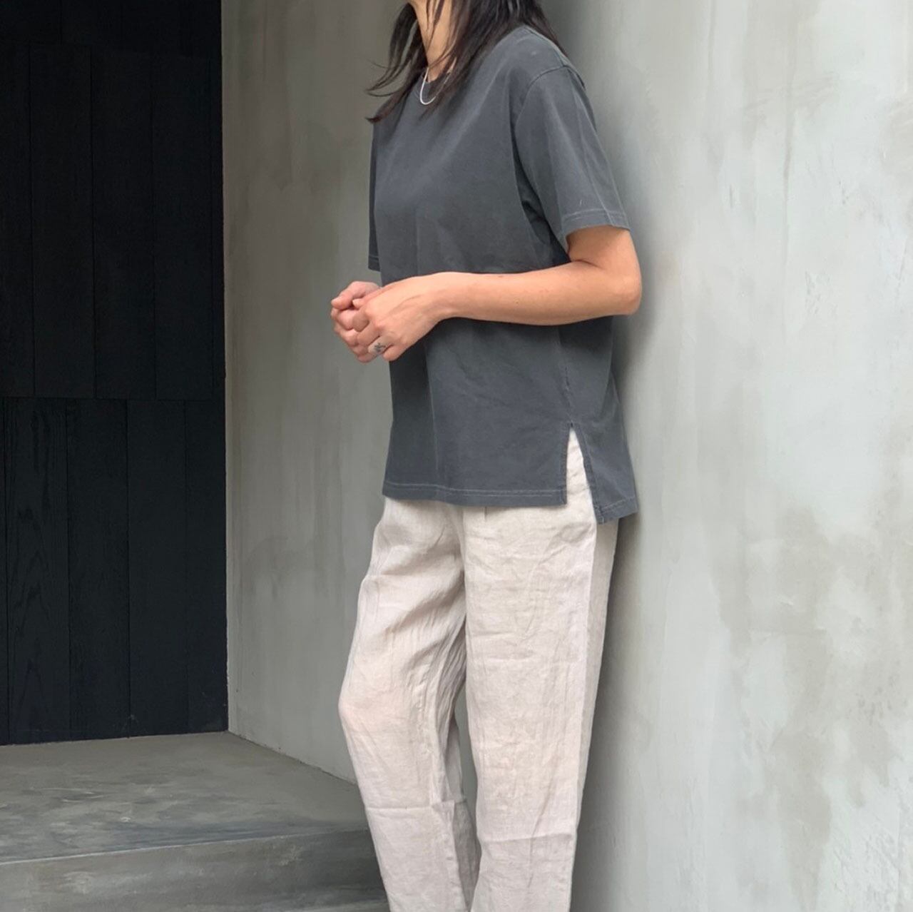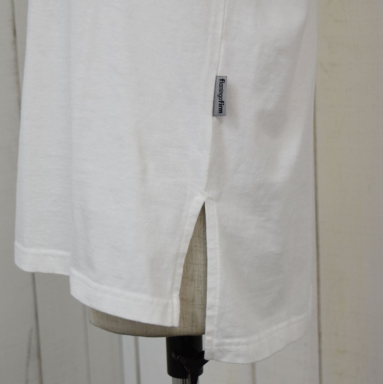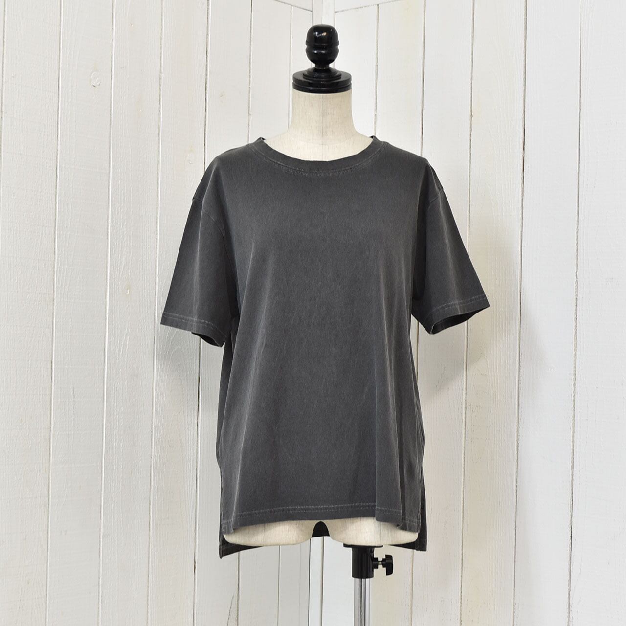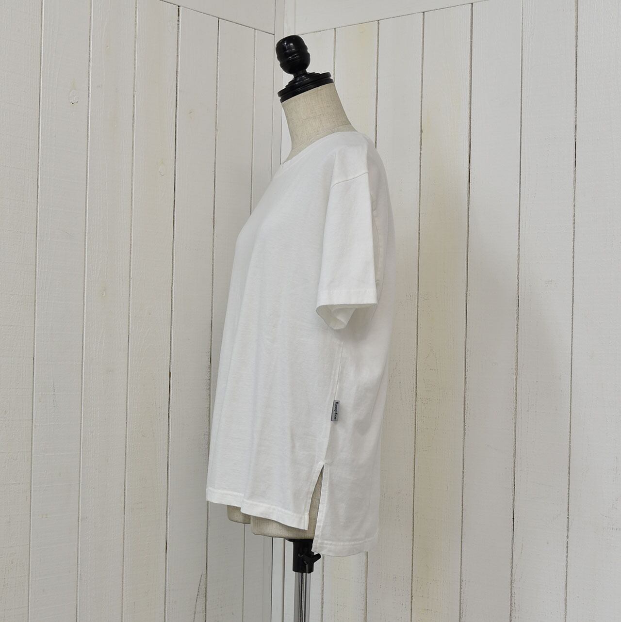 レギュラーサイズのベーシックTシャツ。身体に添わず、離れ過ぎない丁度良いサイズ感でボトムを選びません。サイドスリットと控えめなバックロゴも良いアクセントになっています。