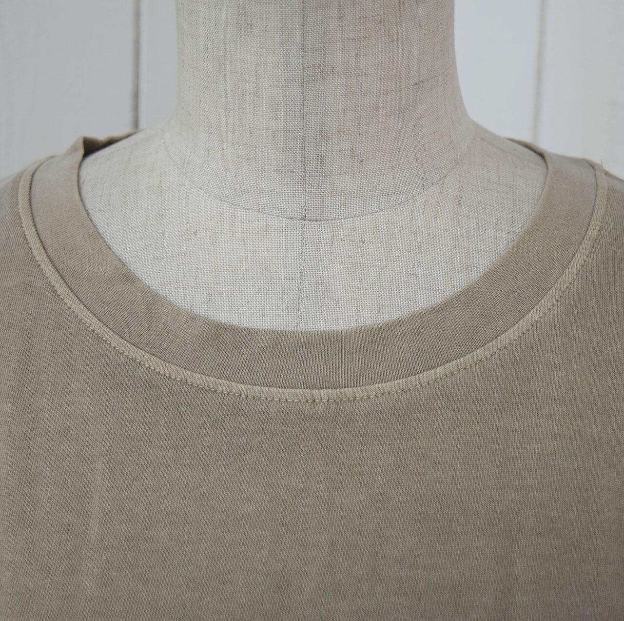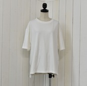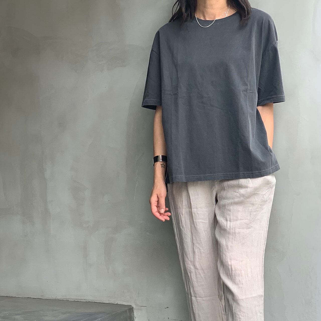 ビッグサイズの無地Tシャツ。ベーシックTシャツより大きめのサイズ感ですが大人の女性でも品良く着て頂けるサイズ感になっています。サイドスリットと控えめなバックロゴも良いアクセントになっています。
