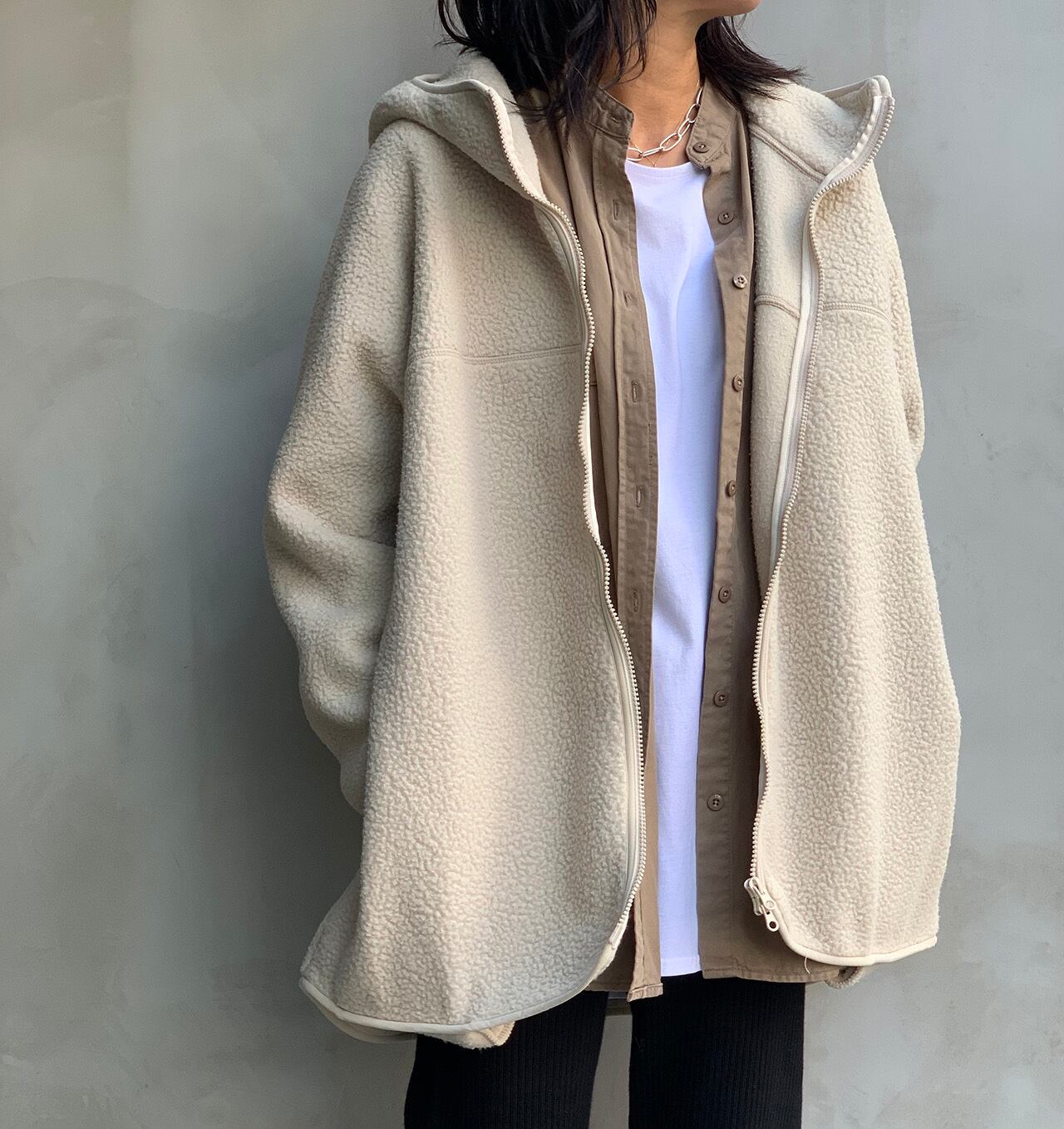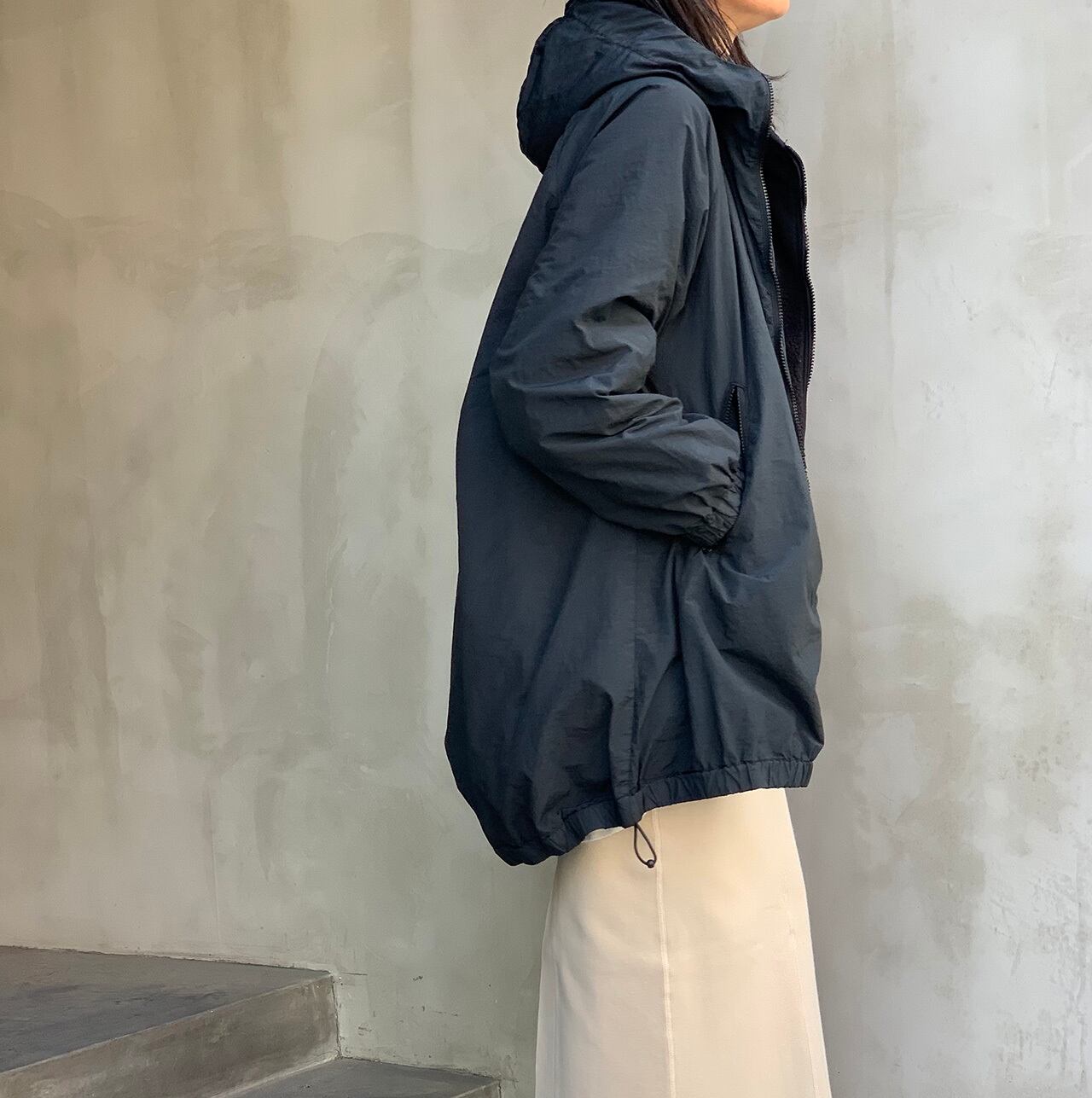 2wayで着ていただけるナイロンフードコート。2枚重ねると暖かく真冬でも着ていただけ、ナイロンコートは季節の変わり目に重宝していただけます。ナイロンコート、ボアコート共に単品使いでも素敵に着ていただけるようなデザインになっています。
