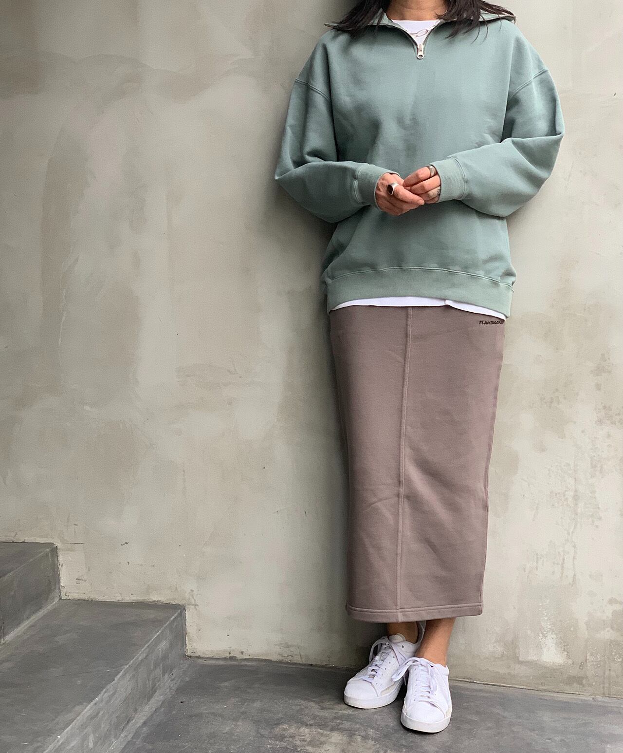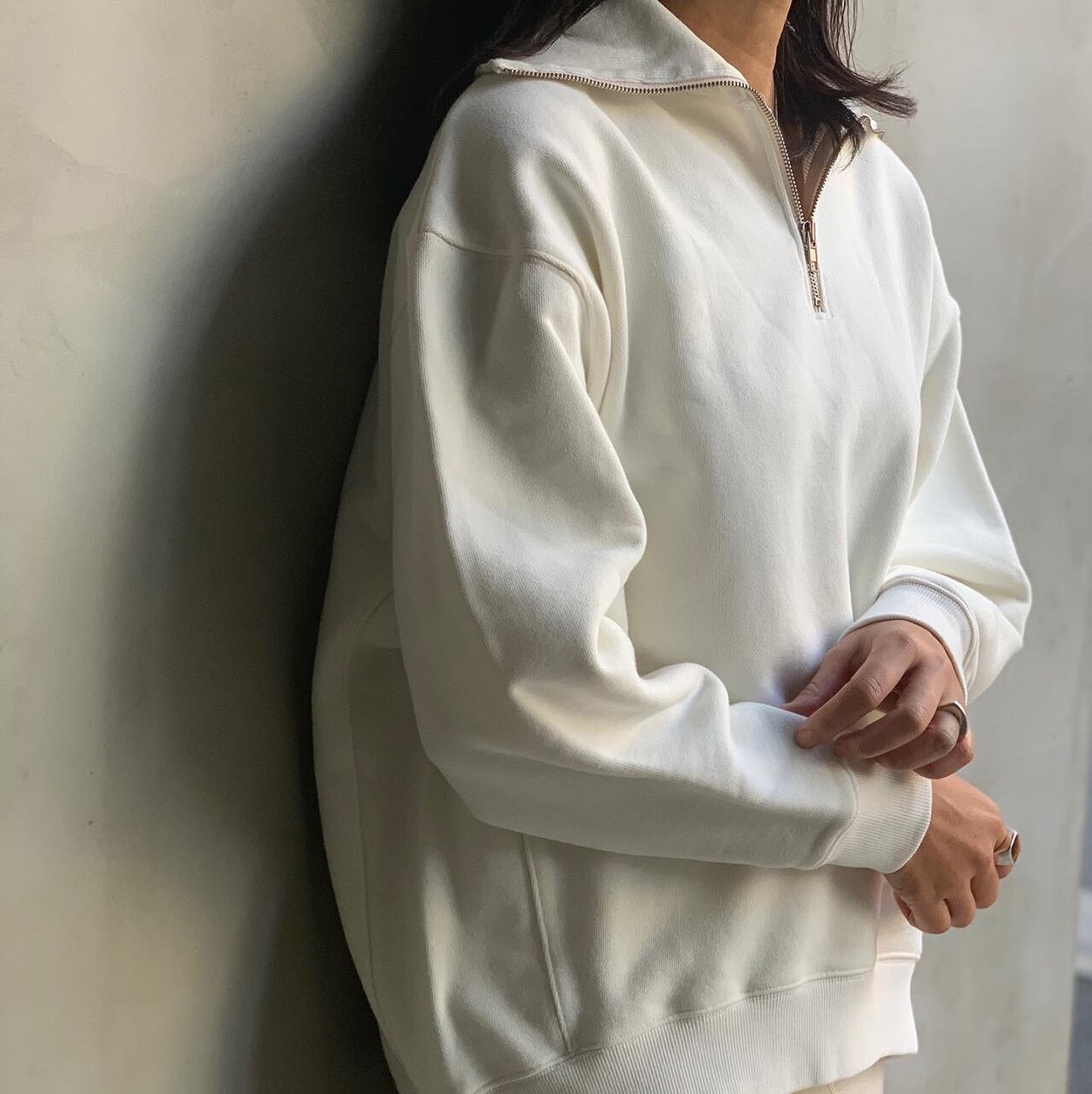 今期イチオシのハーフジップの裏毛のスウェットシャツ。
