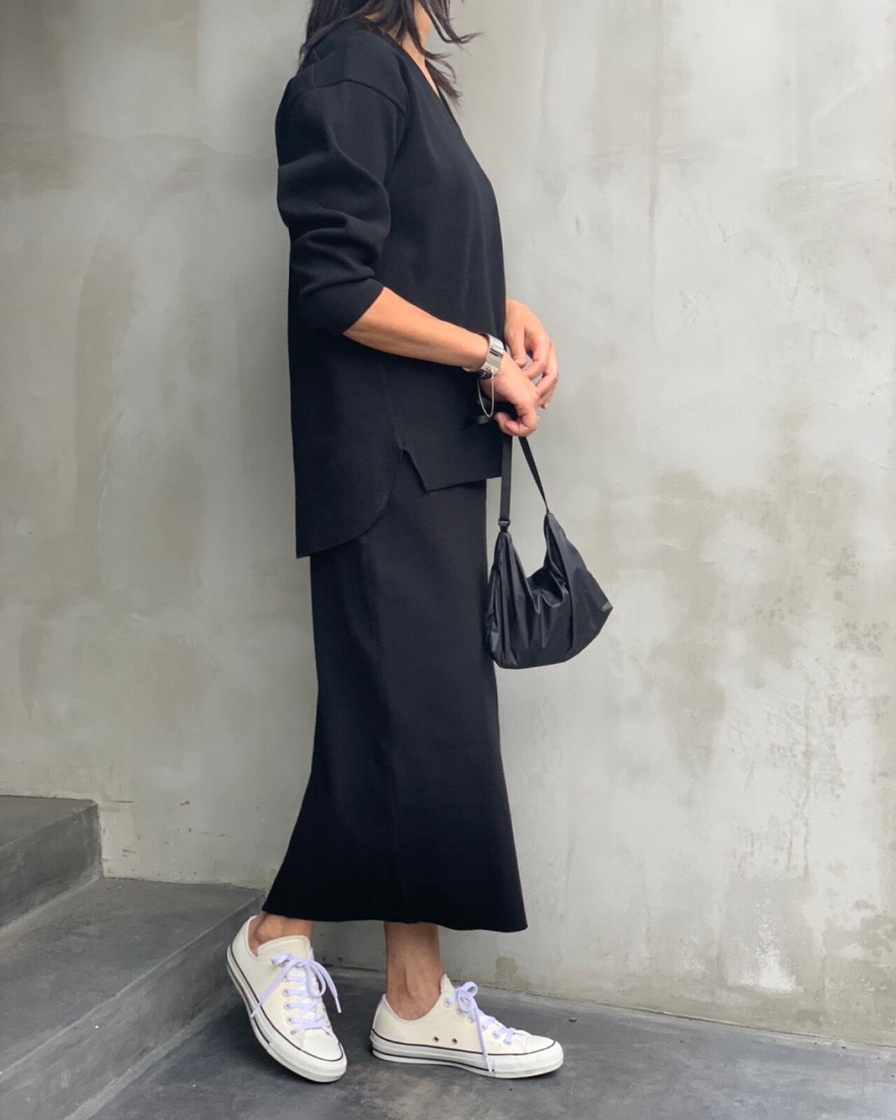 ご好評頂いておりますミラノリブのボトムスのセットアップとしても着ていただけるVネックプルオーバー。ベーシックなアイテムですが背中にハギを入れ立体的なデザインになっています。