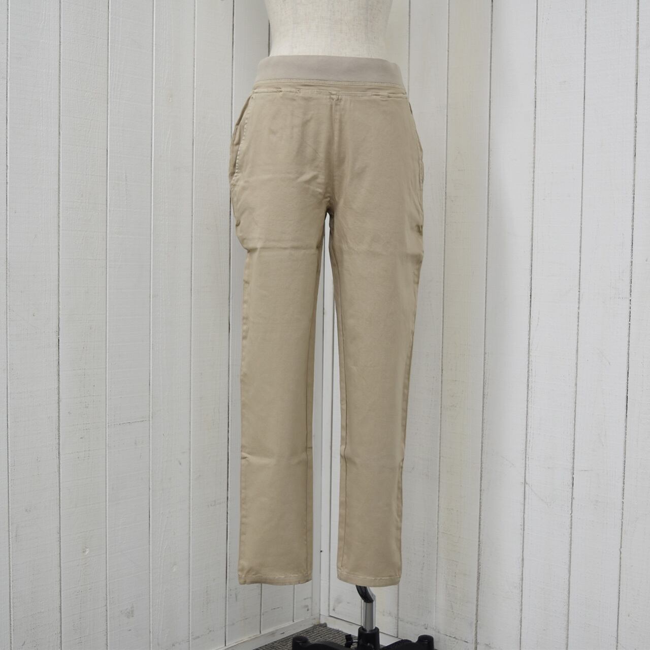 少し光沢感のあるオールシーズンお使い頂けるサテンストレッチテーパードパンツ。