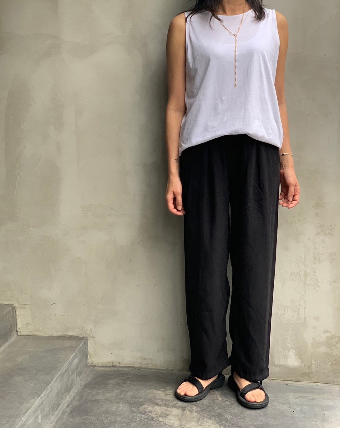 テンセルピケ 2way裾絞りワイドパンツ 5色