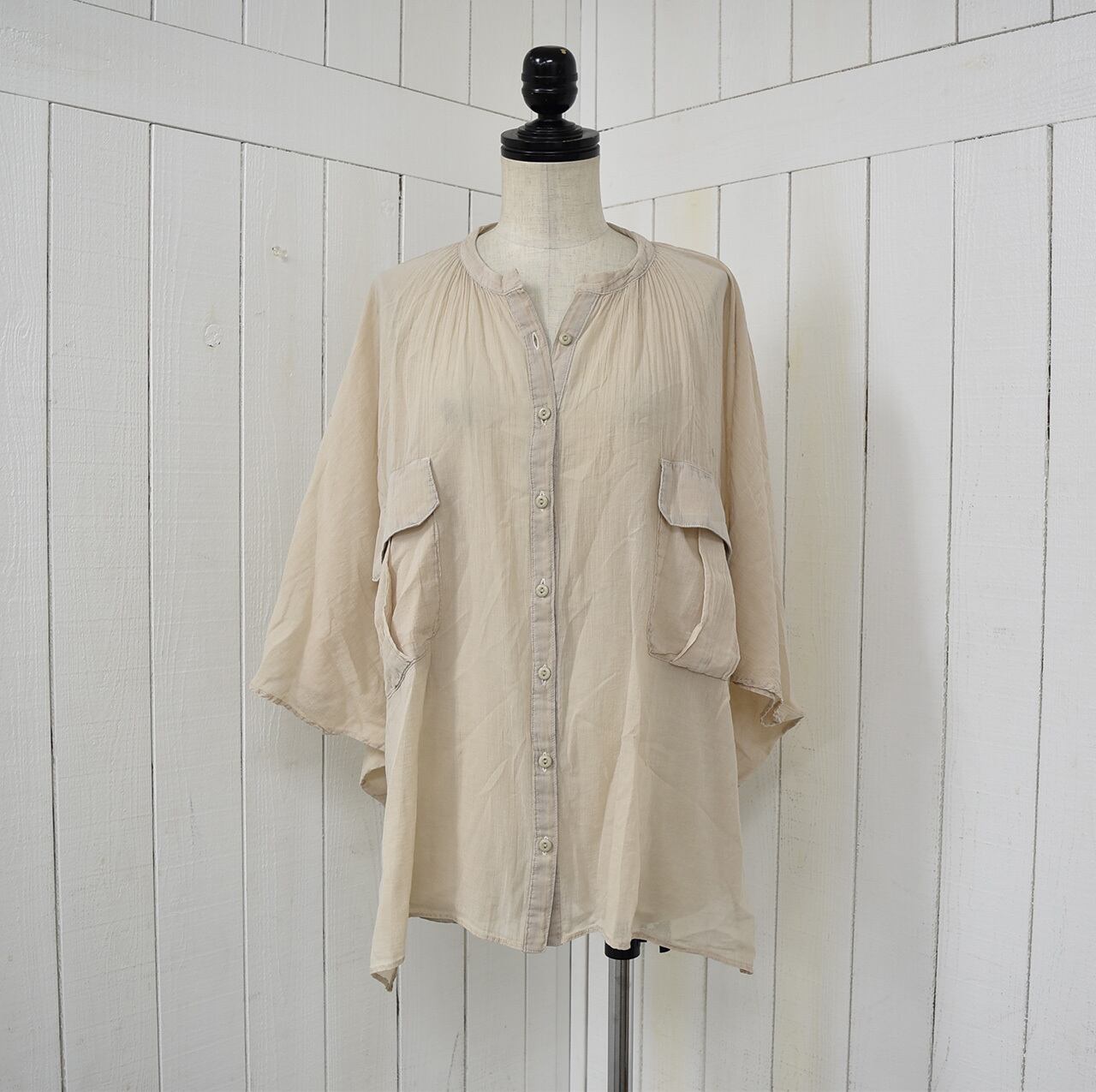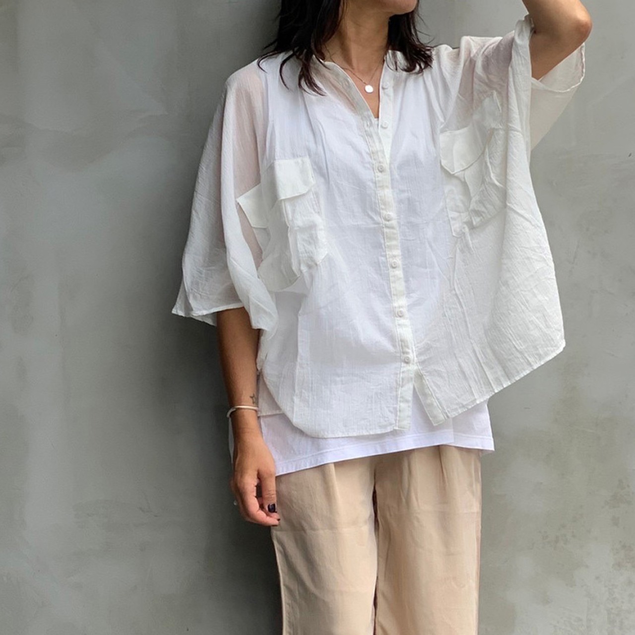 見た目にも涼しげなコットン素材のシアーポンチョシャツ。
