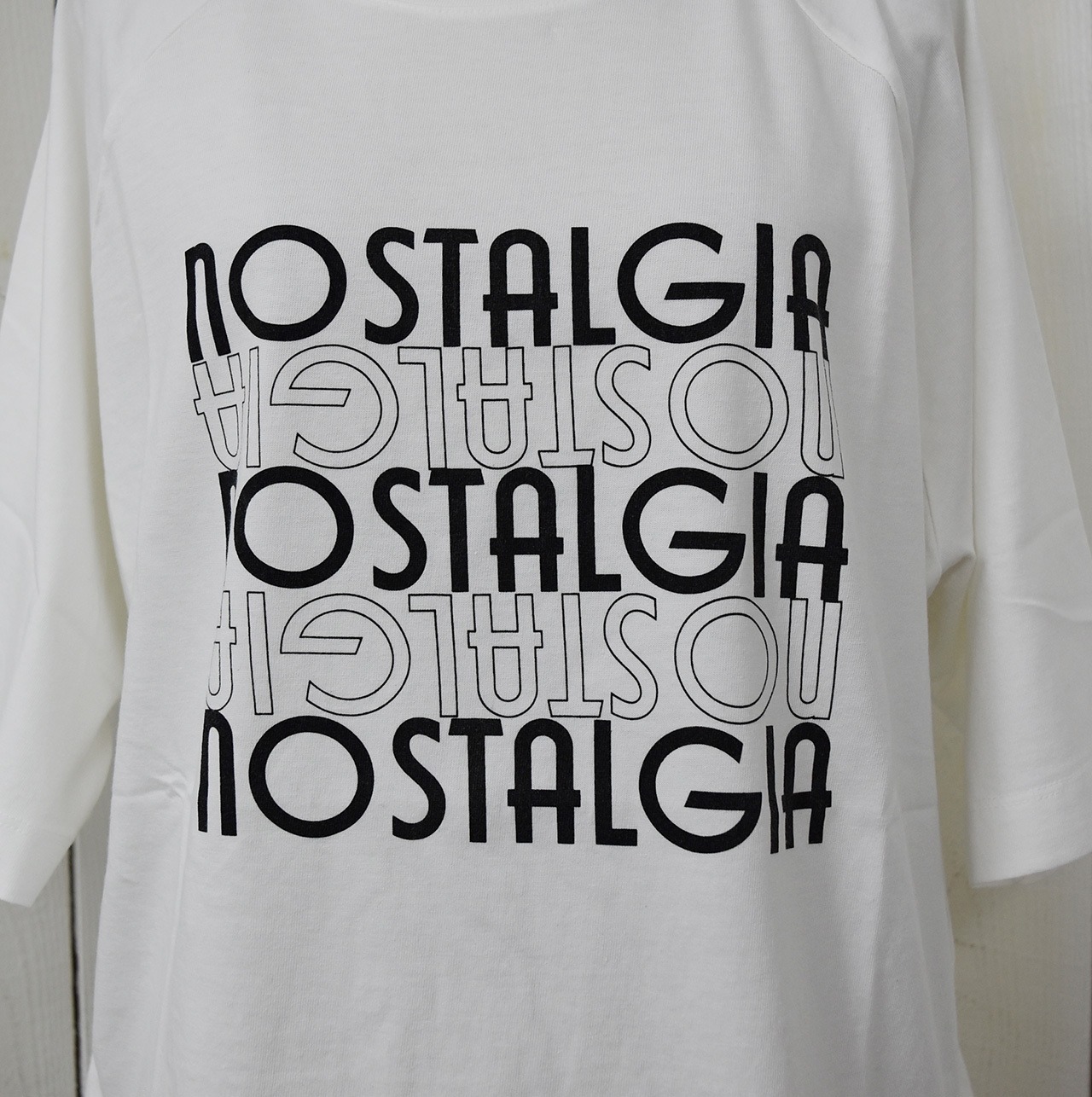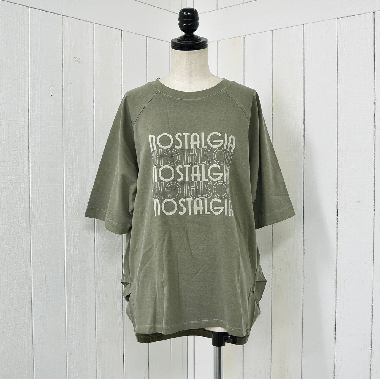 サイドにタックを入れスタイルが決まり易いデザインのNOSTALGIA ロゴTシャツ。
