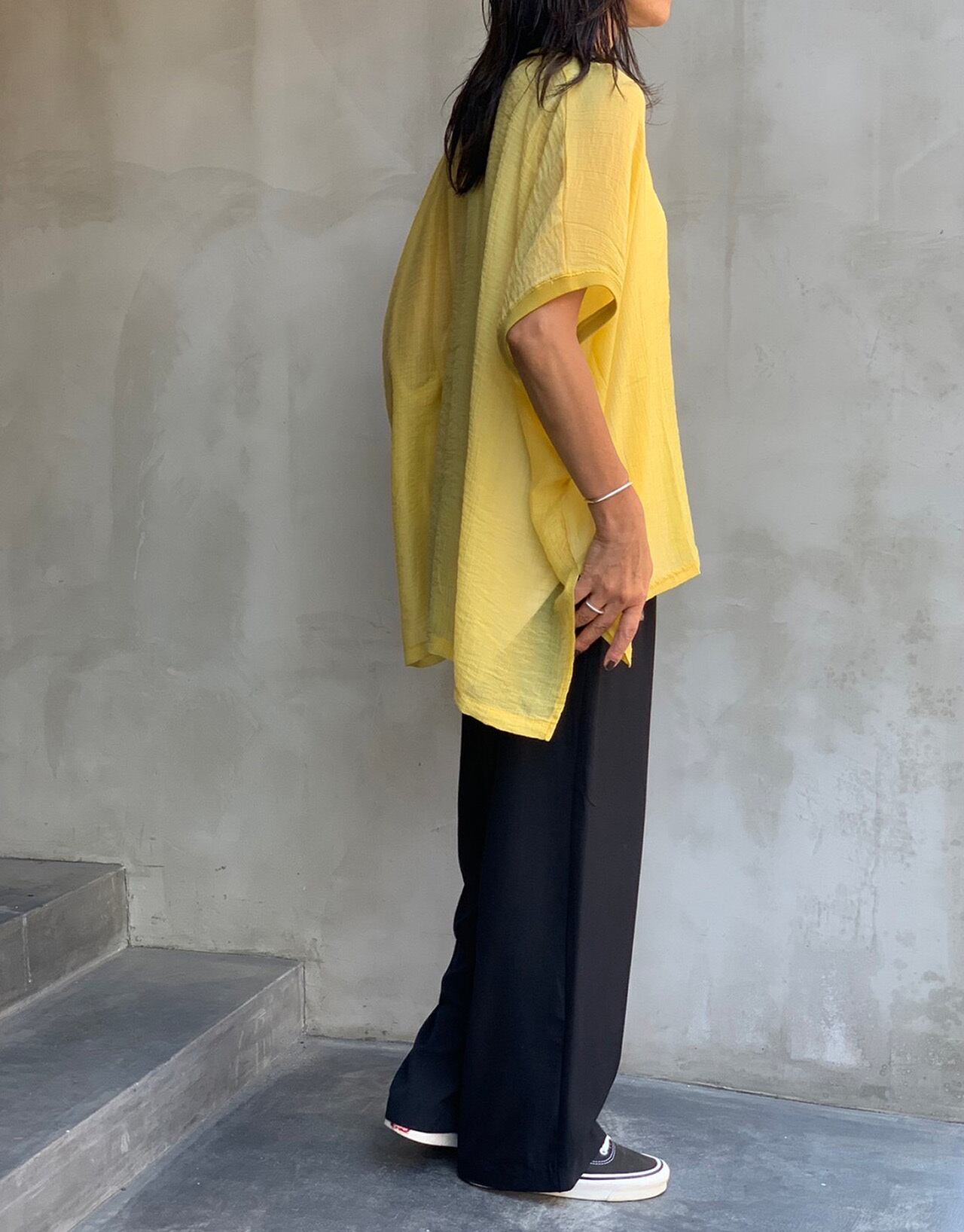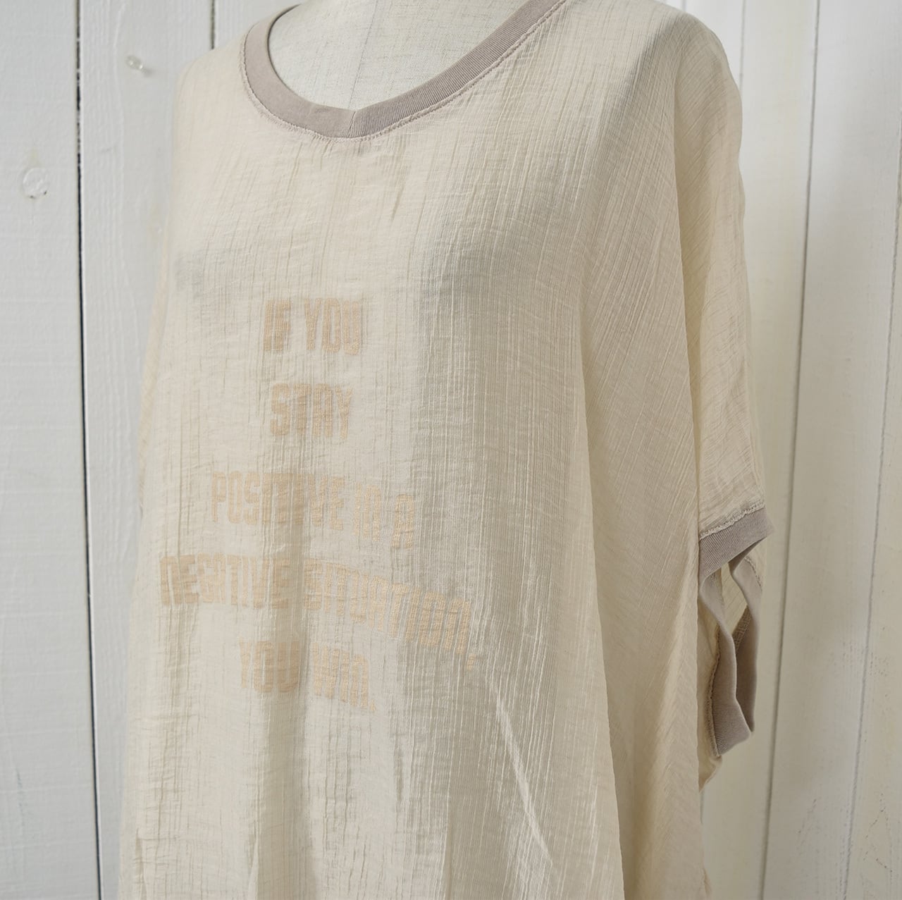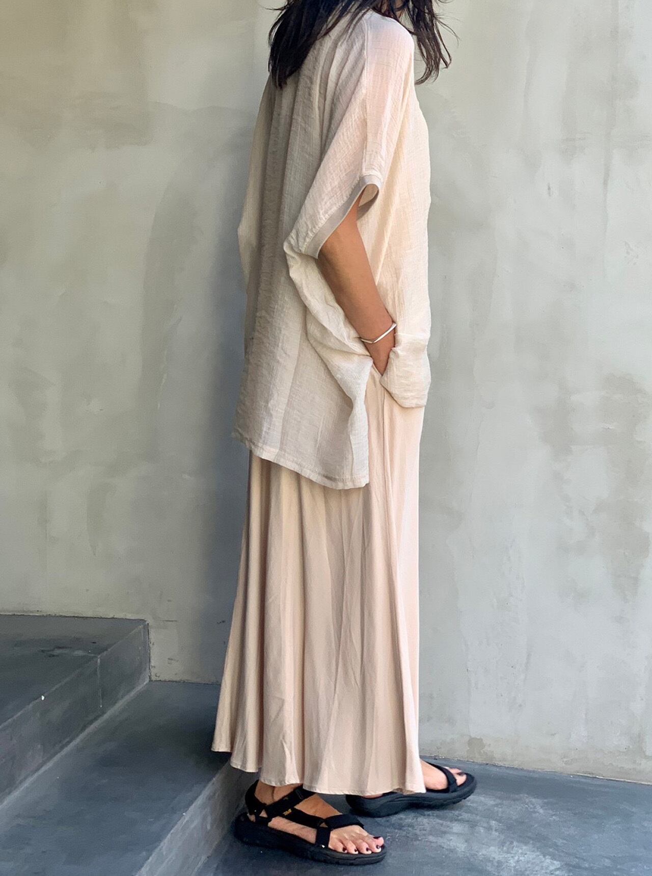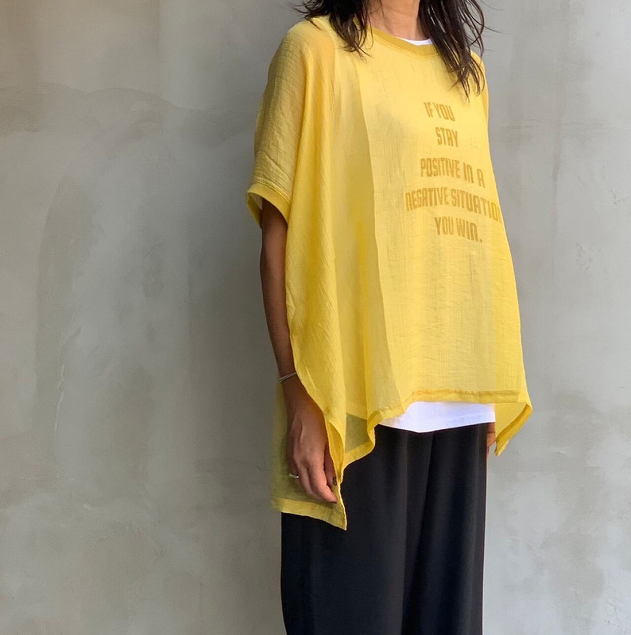 サラッとした素材でポンチョ型のふんわりしたデザインですのでTシャツよりも涼しく着ていただけます。オリジナルタングトップとのコーディネートがおすすめです。