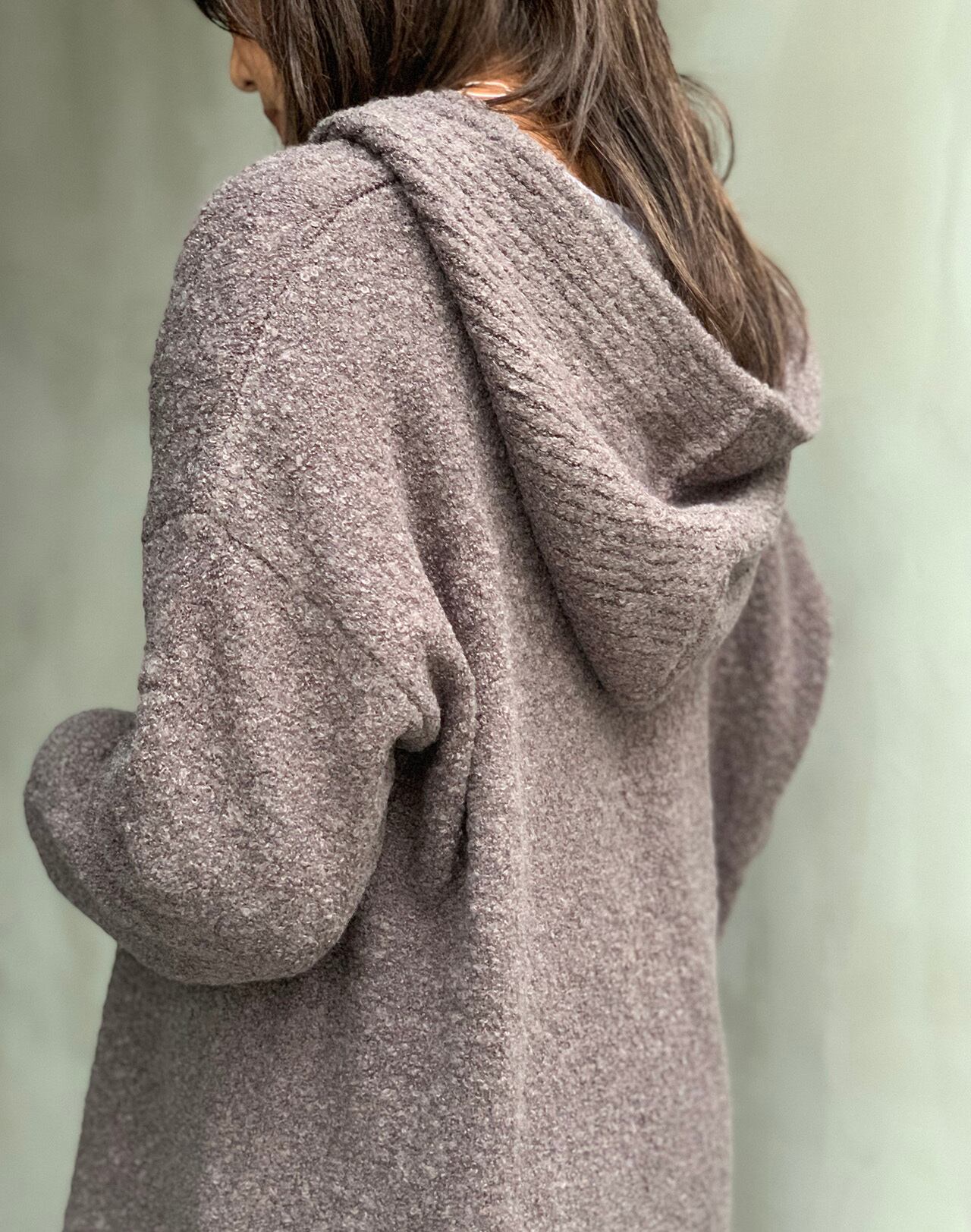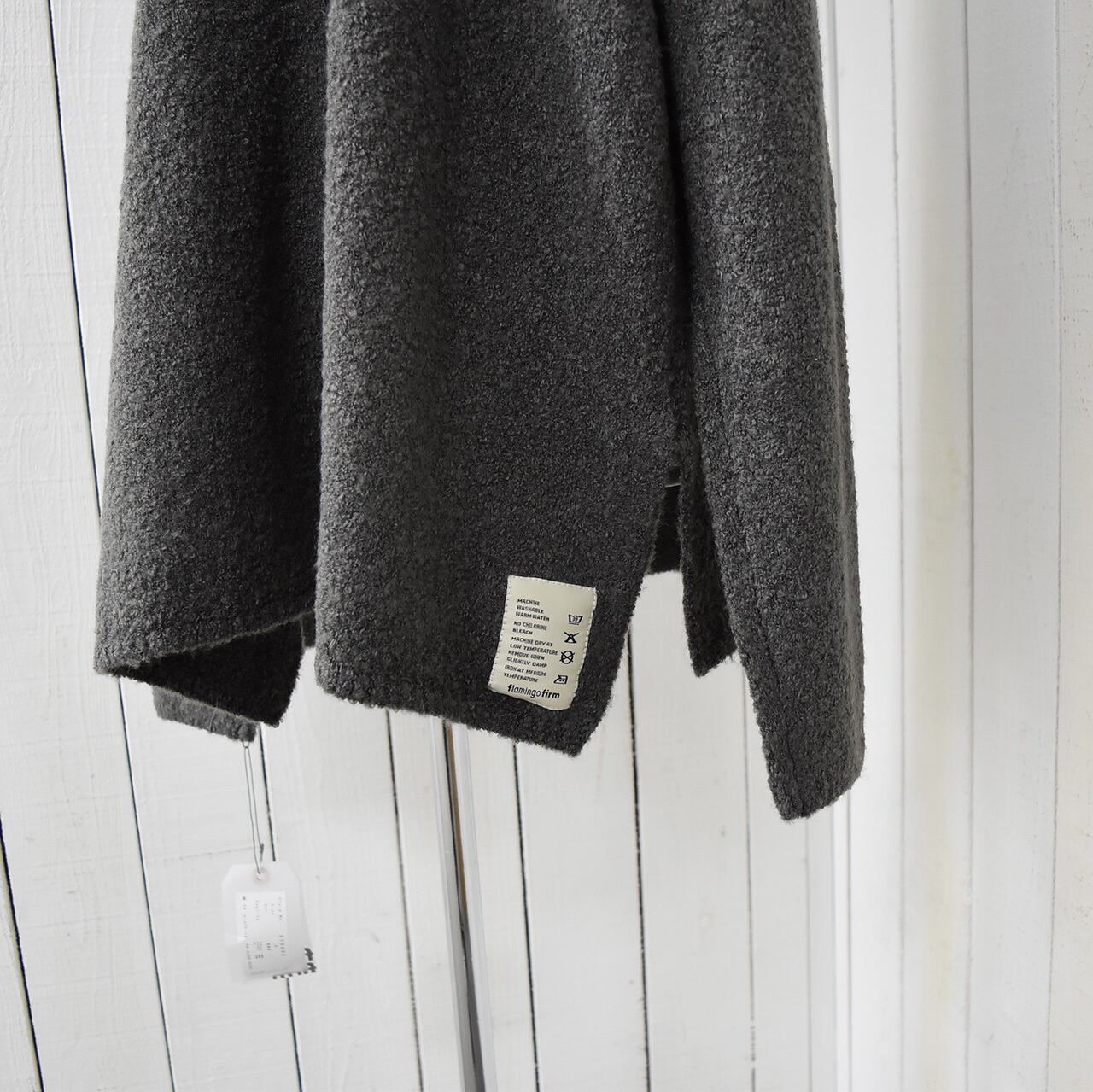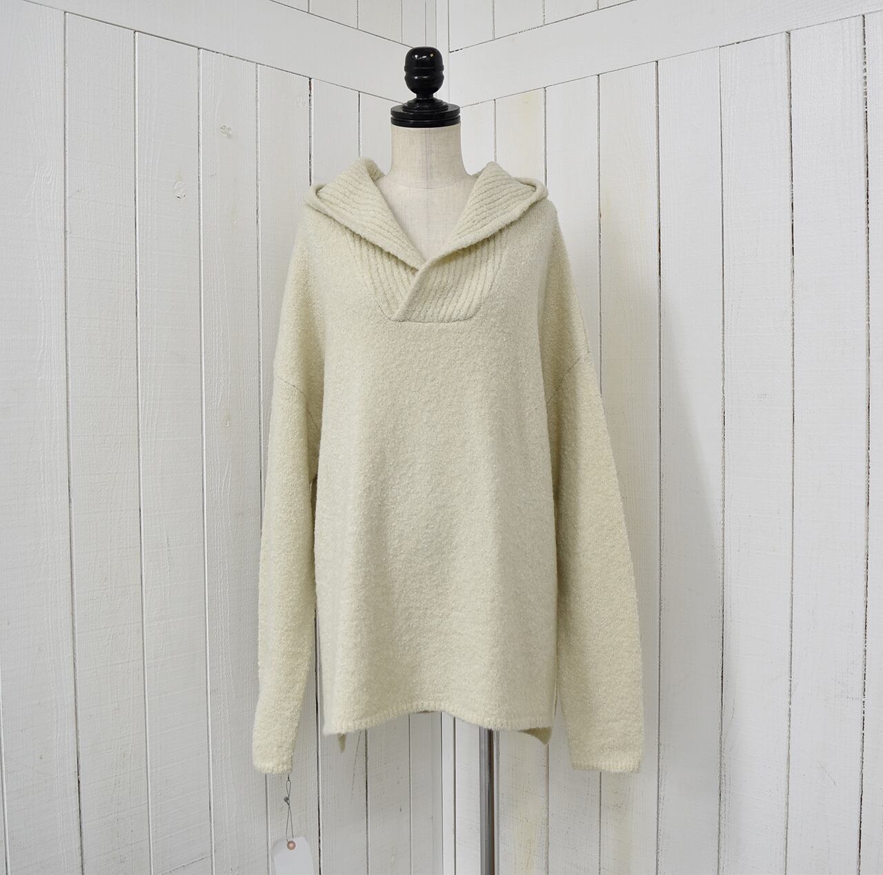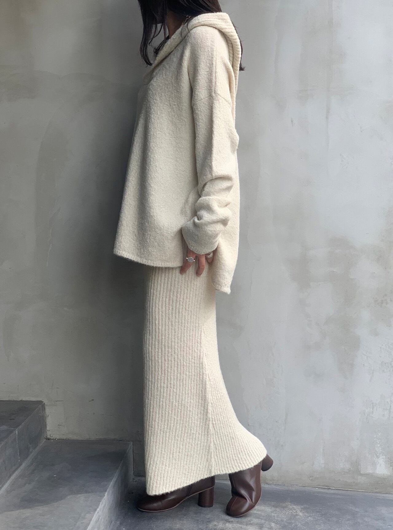 暖かく軽いブークレーニットフードプルオーバー。カジュアル見えするニットでラフに着ていただけます。素材のスカートとパンツでセットアップもおすすめです。カラーはオフ、グレー、ダークブラウン、チャコールの4色展開になります。