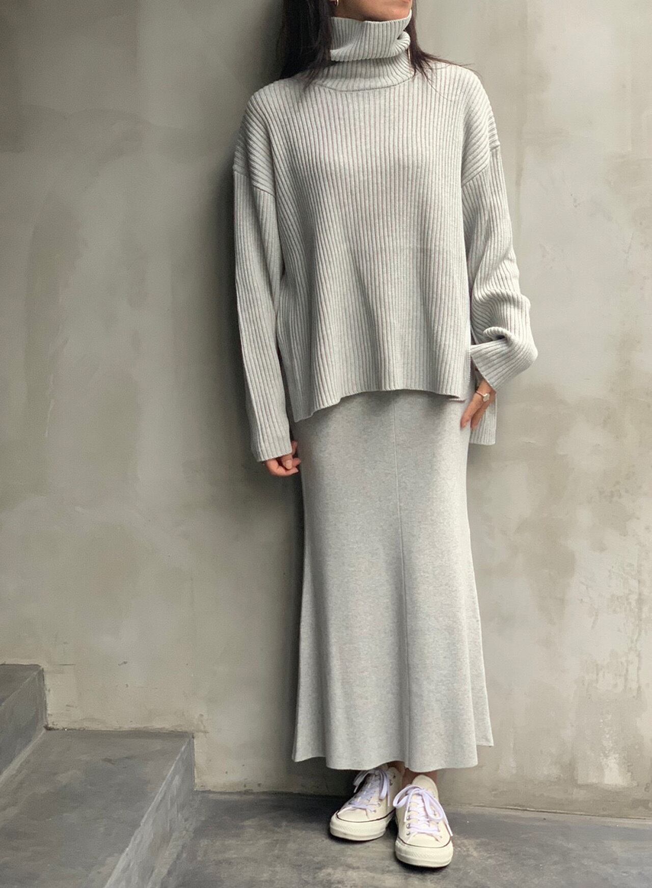 人気のオフタートルリブニット。タートル部分は折り返さずに着ていただいても可愛く着ていただけます。同素材のスカートとセットアップがおすすめ。サンド・ピスタチオ・杢グレー・ブラックの4色展開になります。