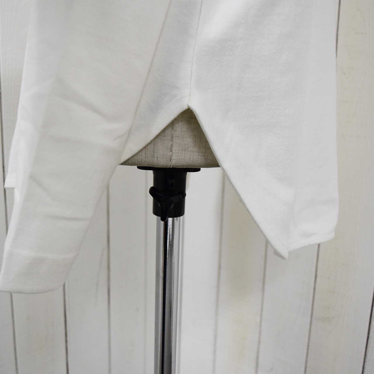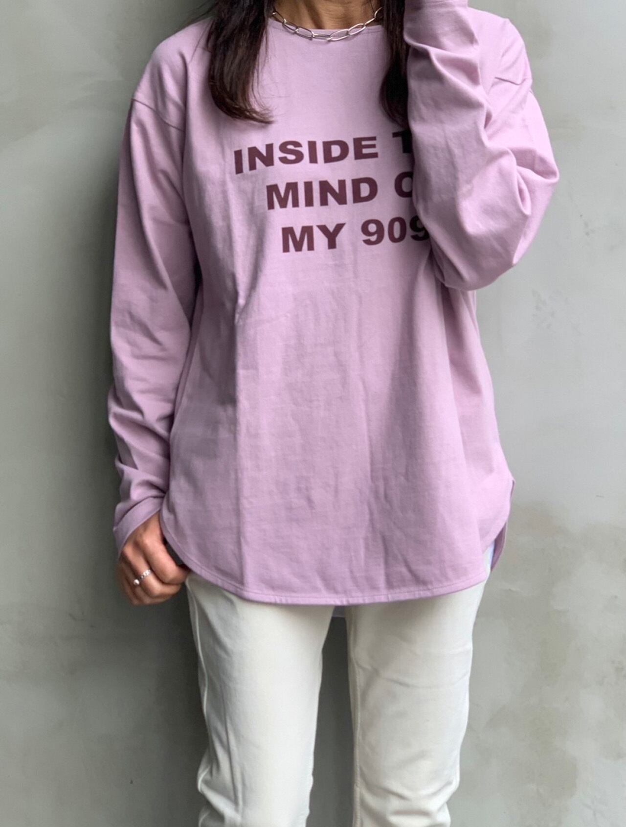ロンTとトレーナーの間くらいの丁度良い生地感の起毛天竺ロゴロングスリーブTシャツ。表面は起毛しているので温かみのある見た目でゴワツキがない着心地です。インナーの調節で3シーズン着ていただけます。カラーはホワイト、ラベンダー、サックスの3色展開になります。