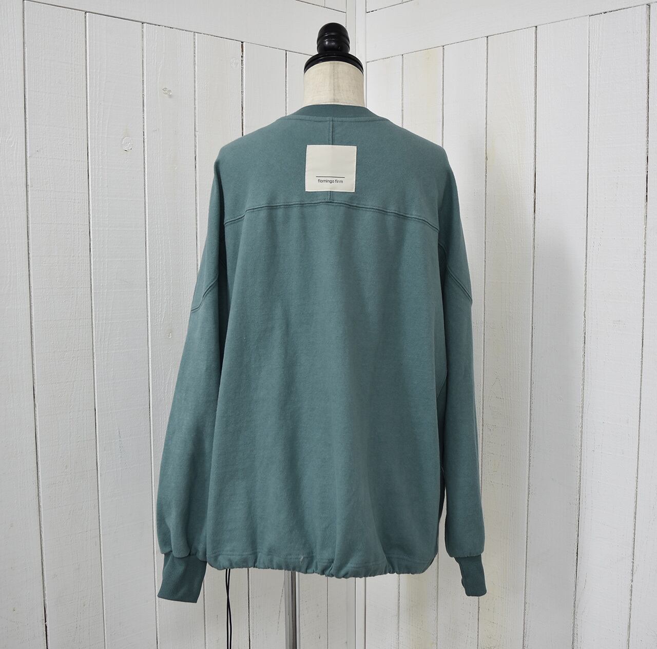 ロンTとトレーナーの間くらいの丁度良い生地感の起毛天竺モックネックパフスリーブTシャツ。表面は起毛しているので温かみのある見た目でゴワツキがない着心地です。襟元に少し高さを出したモックネックに袖はパフスリーブにし、裾はドローコードで調節可能なデザインになっています。カラーはホワイト、ブルーグリーン、ブラックの3色展開になります。