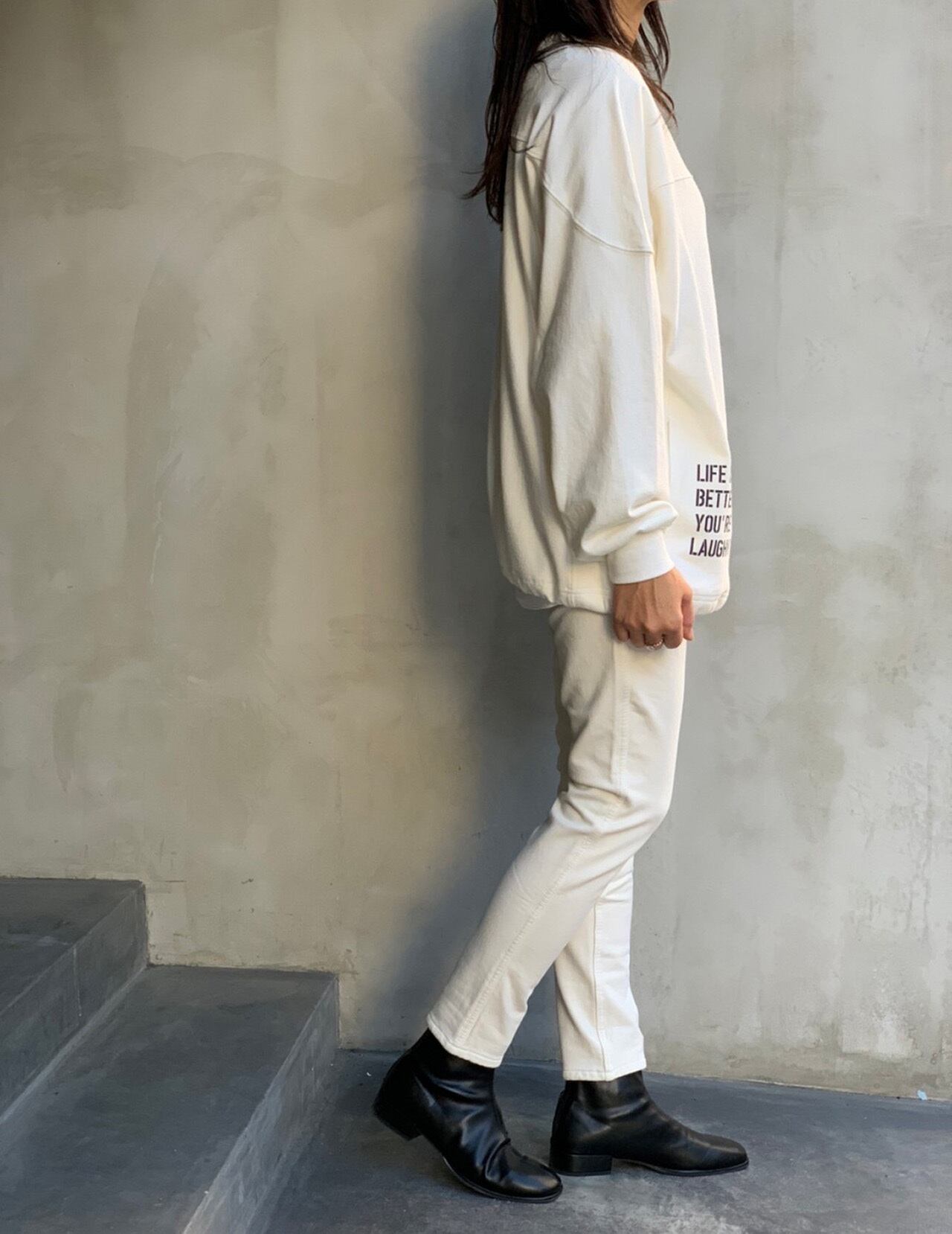 製品染めの商品は独自の色と自然な風合いを持たせるため縫製後に手染めにより加工を施しております。加工製品ですので多少の色ムラ、加工感はございますのでご了承下さい。