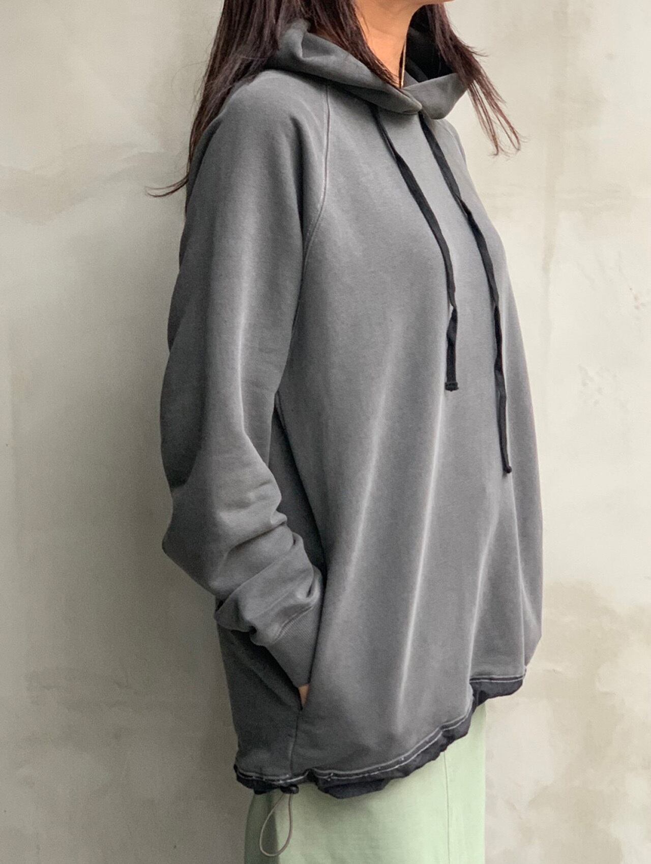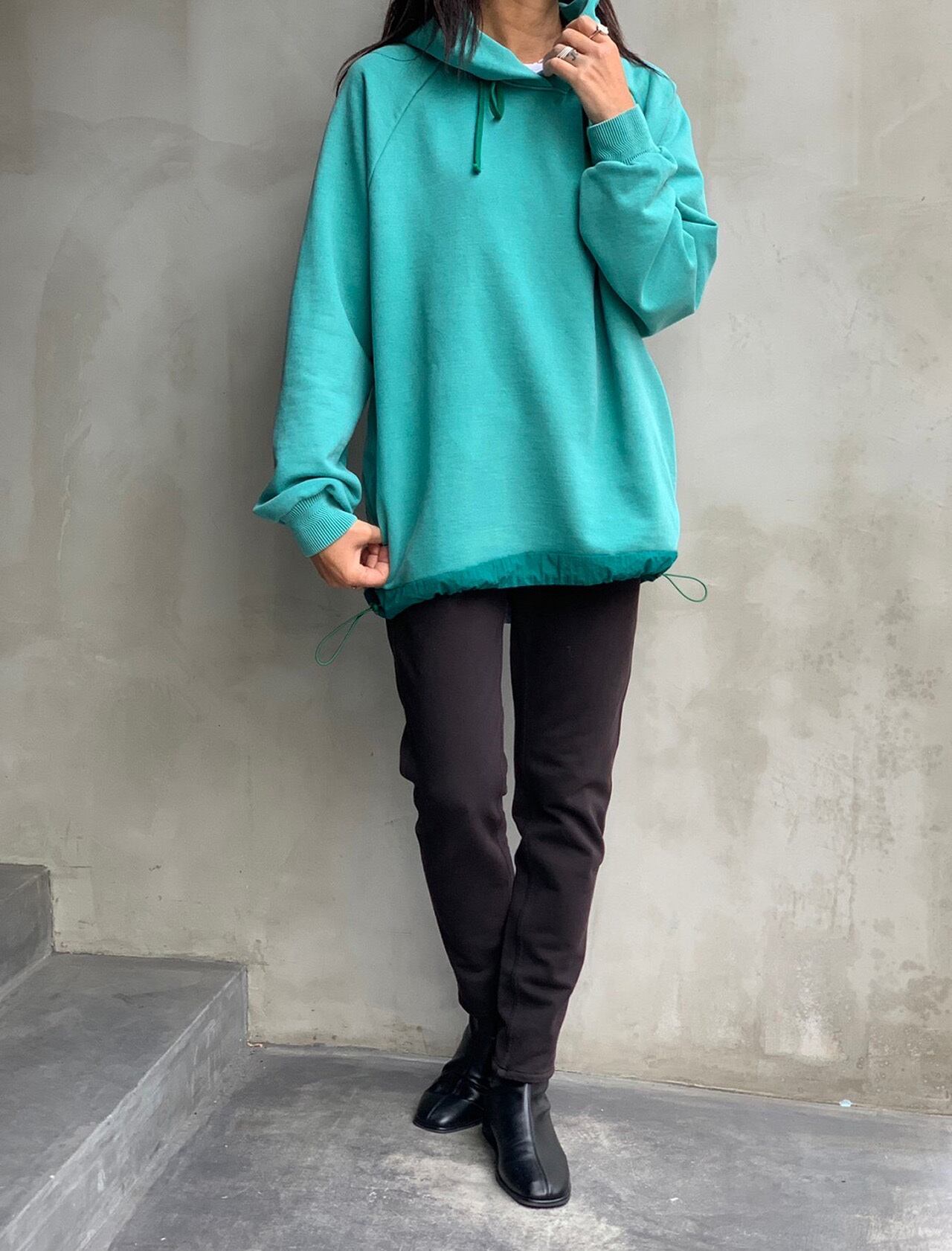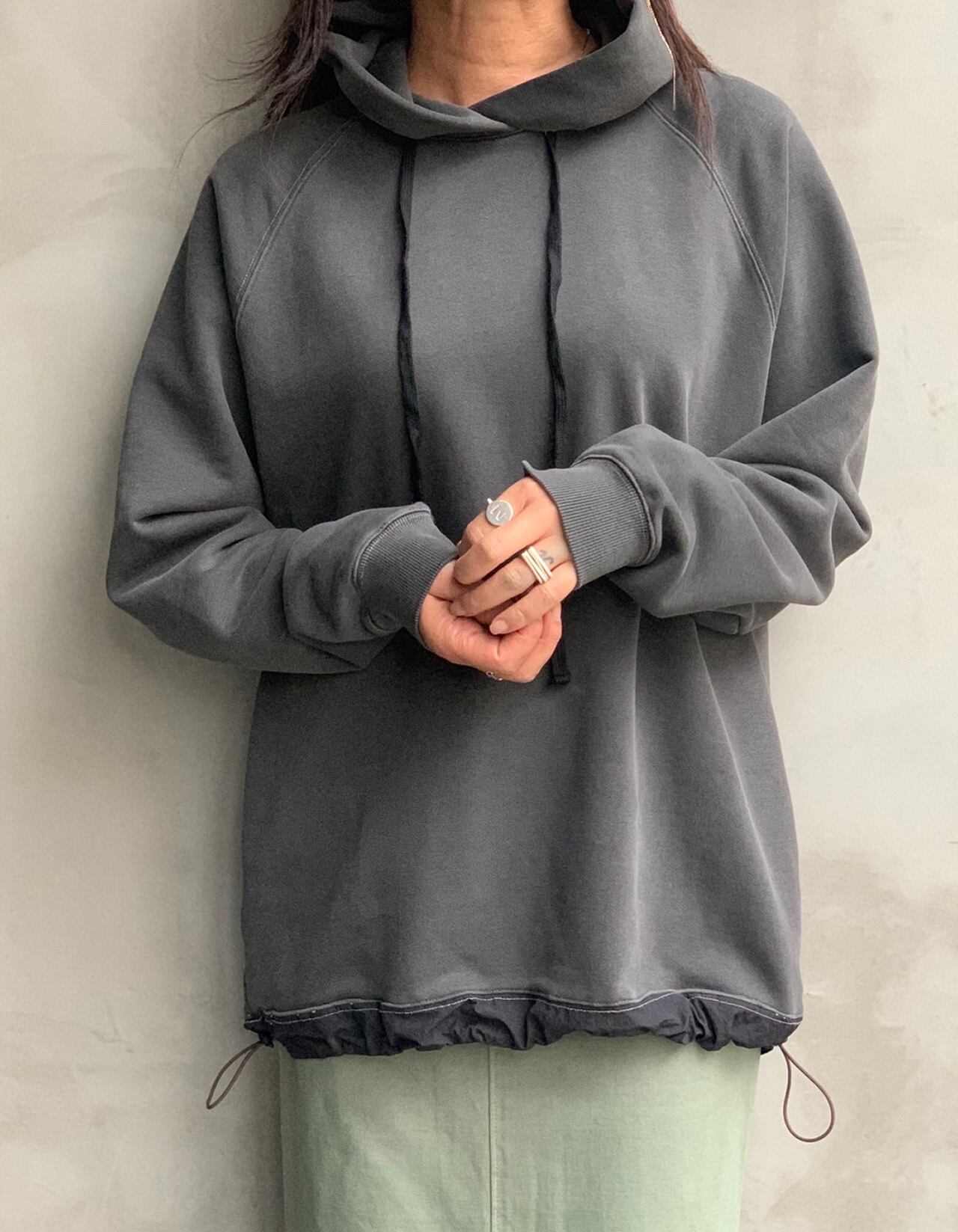 細かいディティールを効かせたピグメント裏毛パーカー。袖のリブを編み立てにし、袖はパフスリーブで女性らしさをプラス。ロゴは同色にし主張しすぎないのでロゴが苦手な方にもおすすめです。カラーはサンド、エメラルドグリーン、チャコールの3色展開になります。