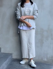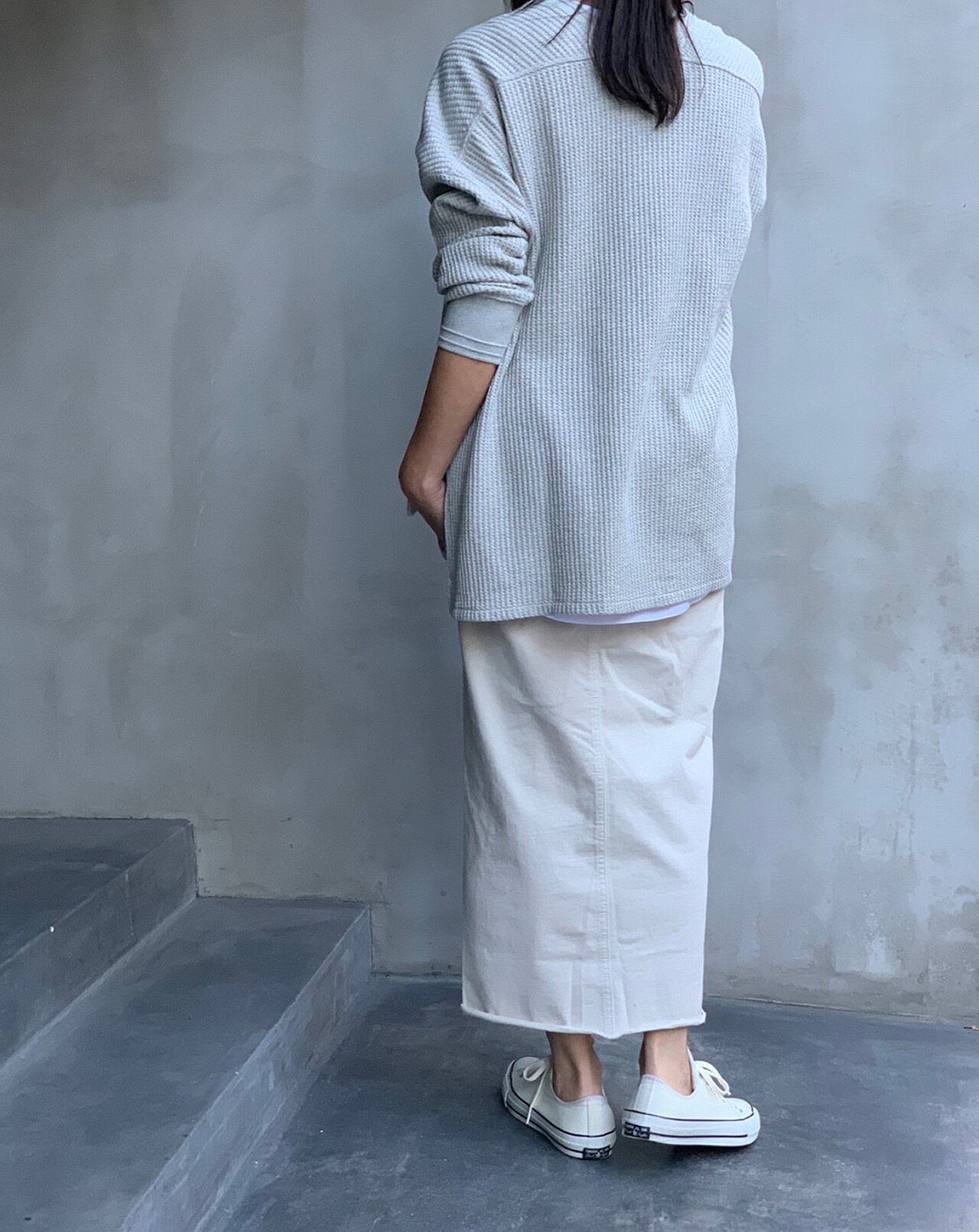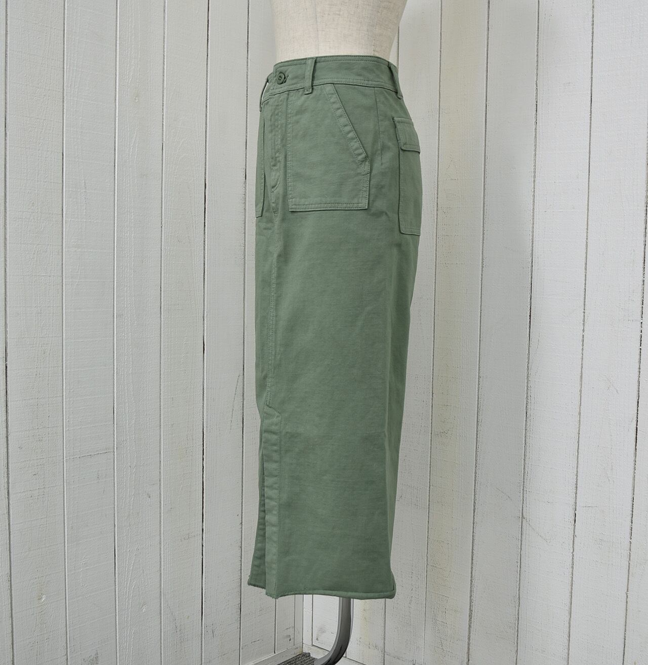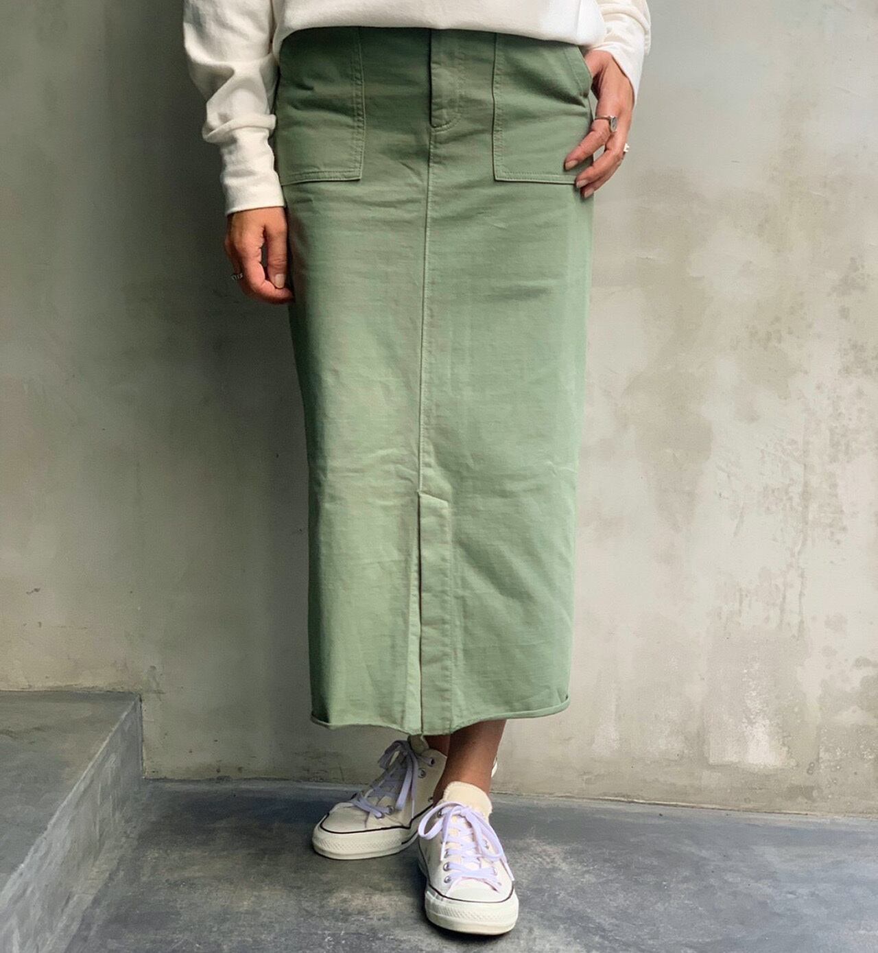 ストレッチの効いた度詰天竺素材を使用したタイトスカート。縦のラインを強調するのでスタイルアップが期待出来ます。ウエスト 部分は少し大きめになっていて内側の紐で調節可能。シーズンレスでお使いいただけます。石灰、スモーキーグリーン、ブラックの3カラーになります。