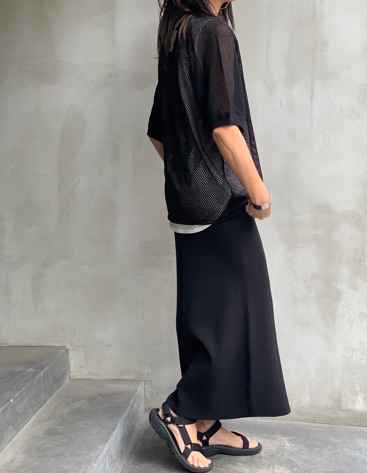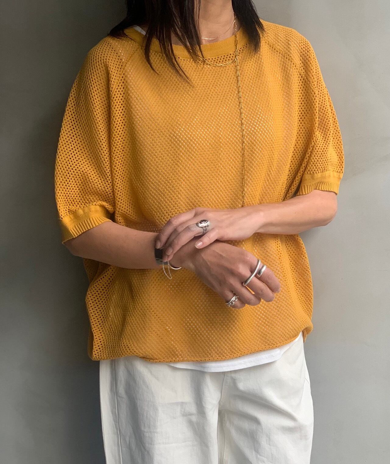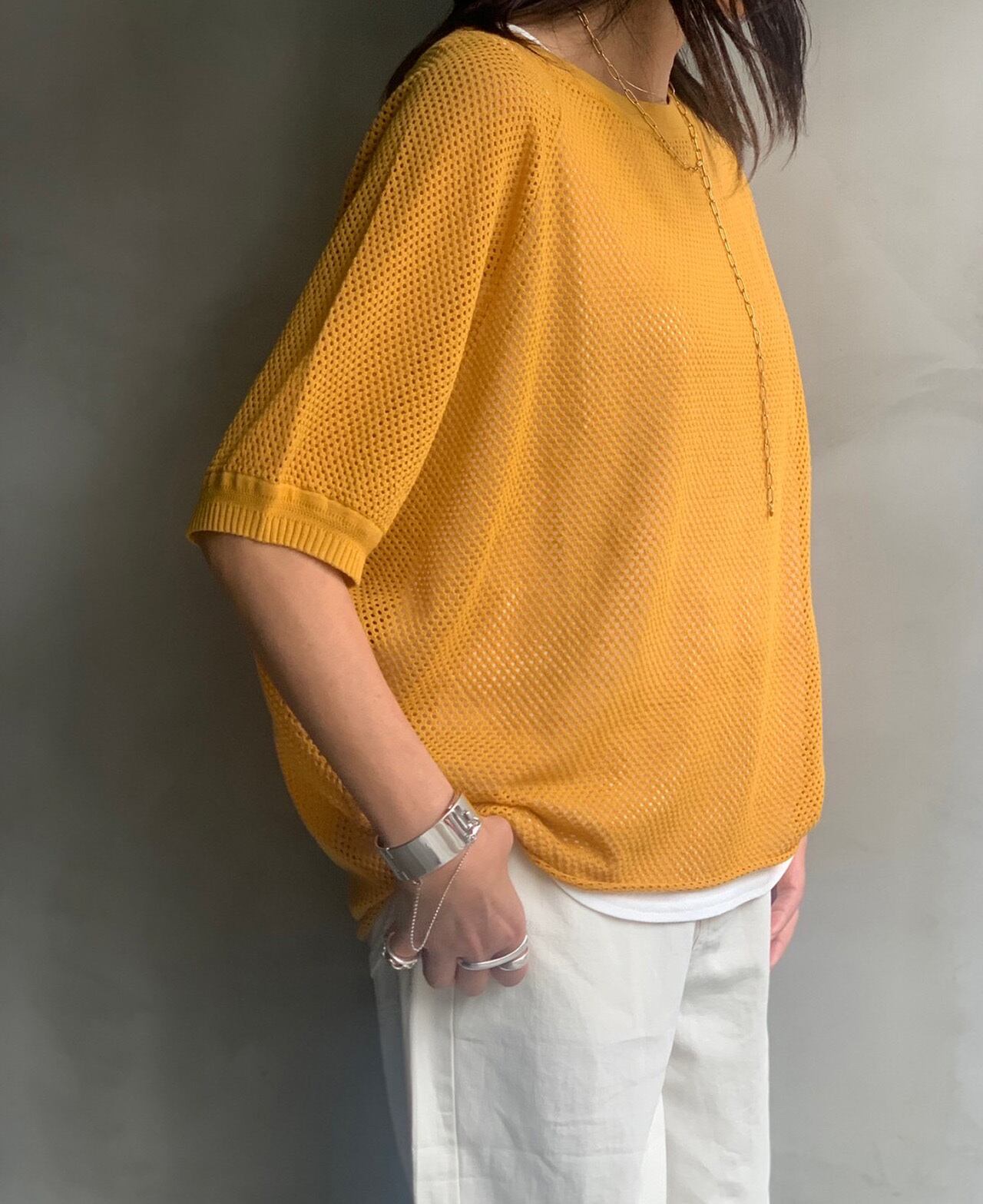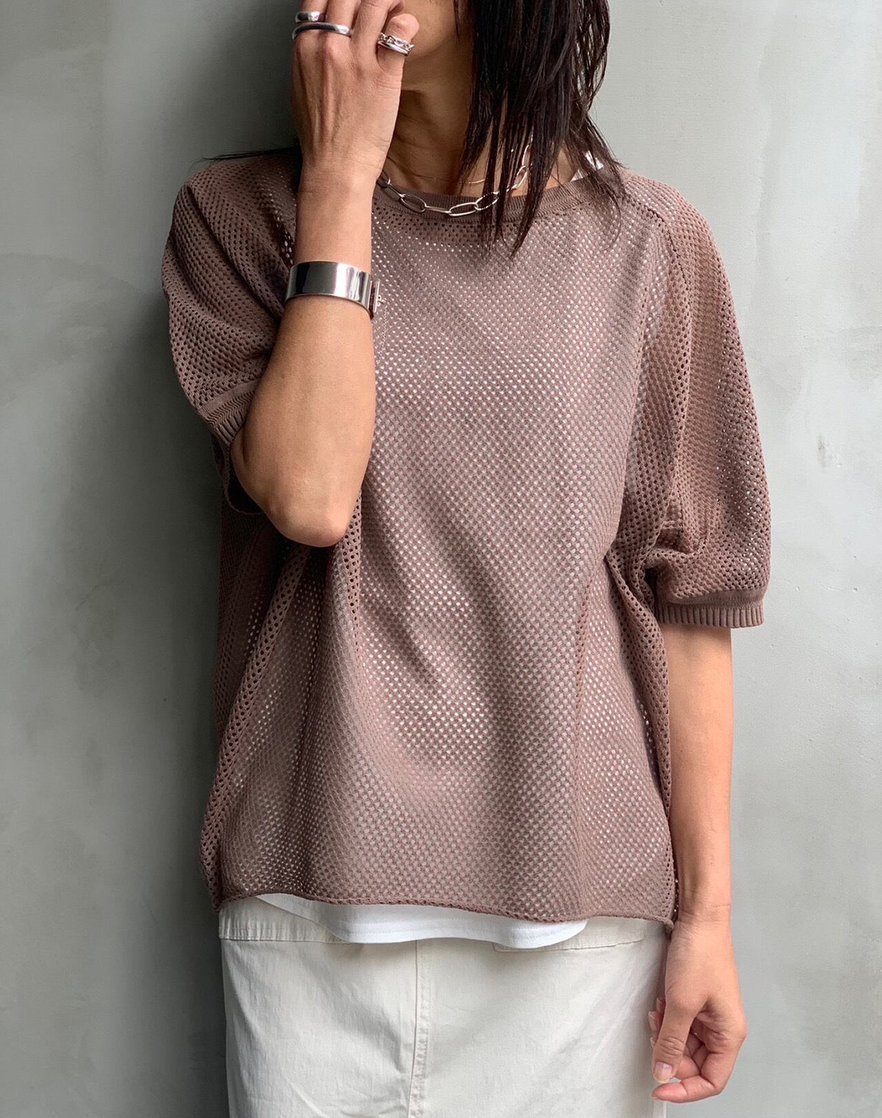 今年のSSで人気のメッシュシリーズの半袖アンサンブルニット。