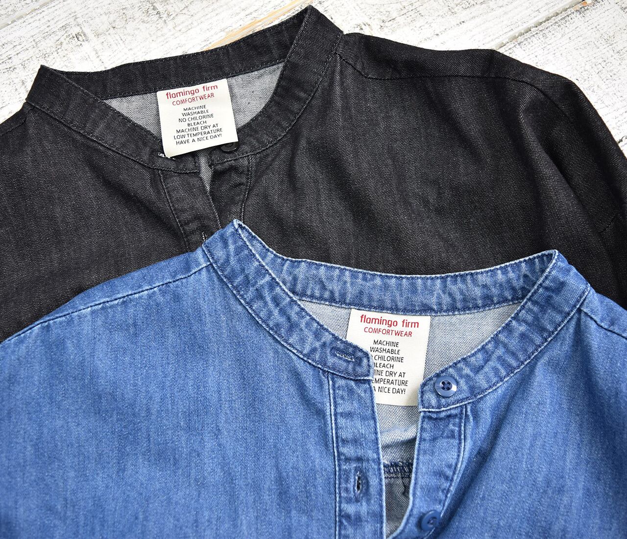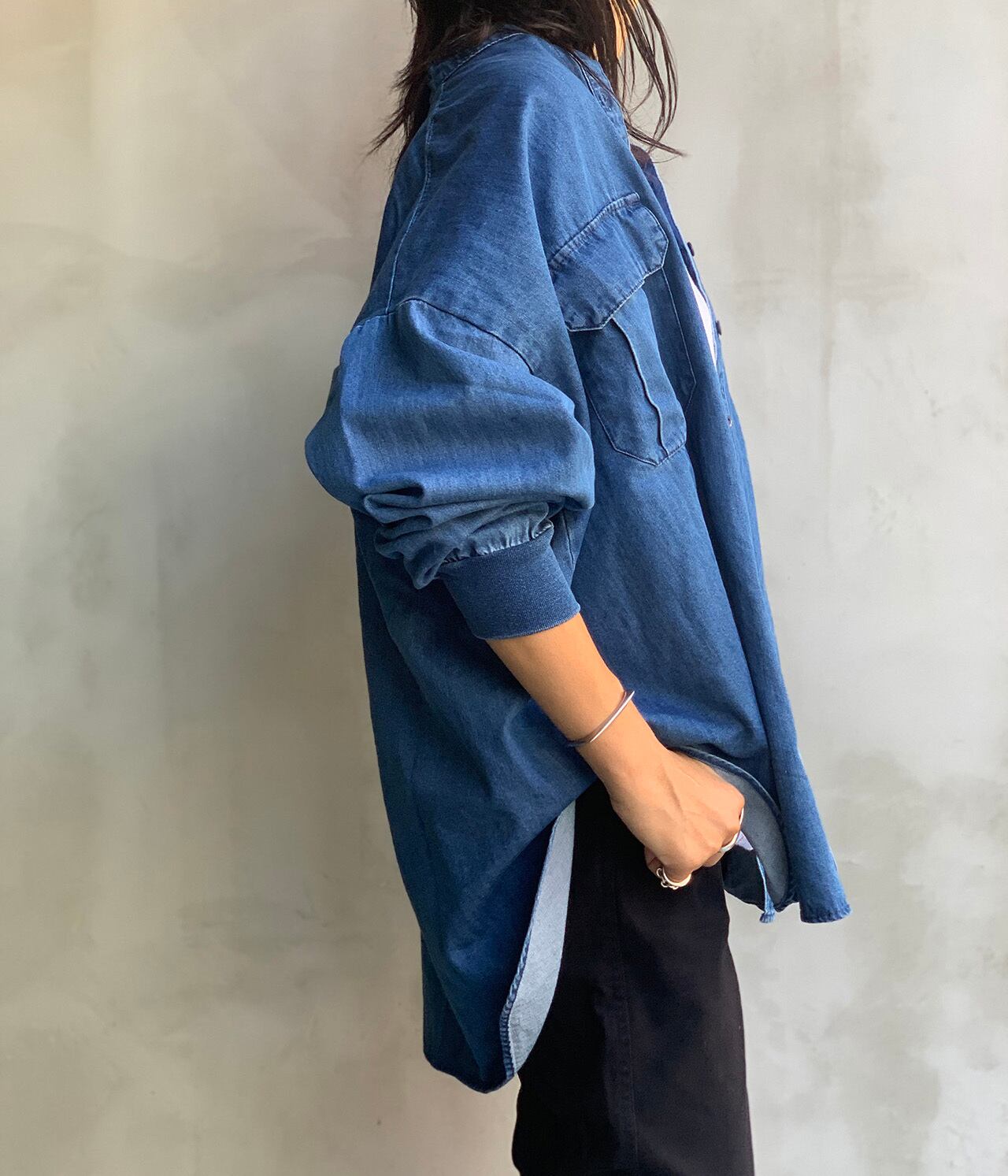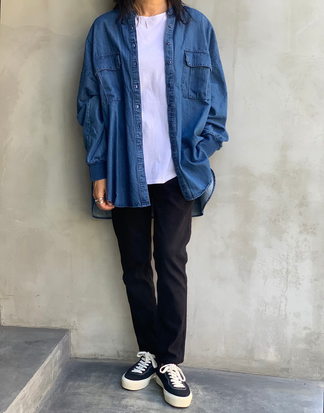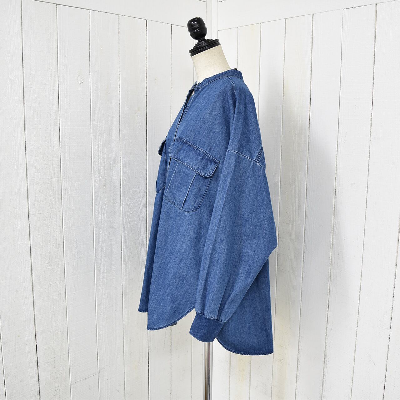 ゆったりしたシルエットの羽織としても使い勝手の良いダンガリーシャツ。背中のギャザーで女性らしさをプラス。中肉でロングシーズンお使いいただけます。カラーはブルーとブラックの2色になります。