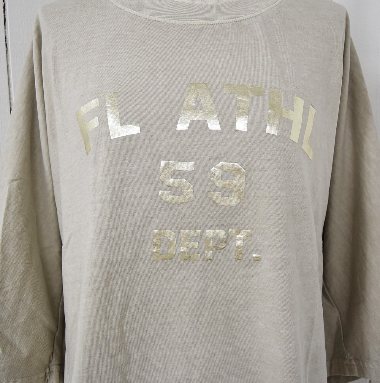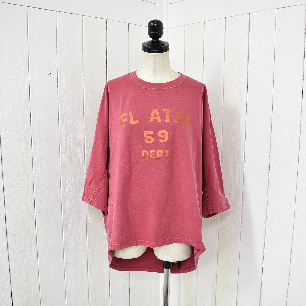 七分袖箔プリントピグメントTシャツ 4色