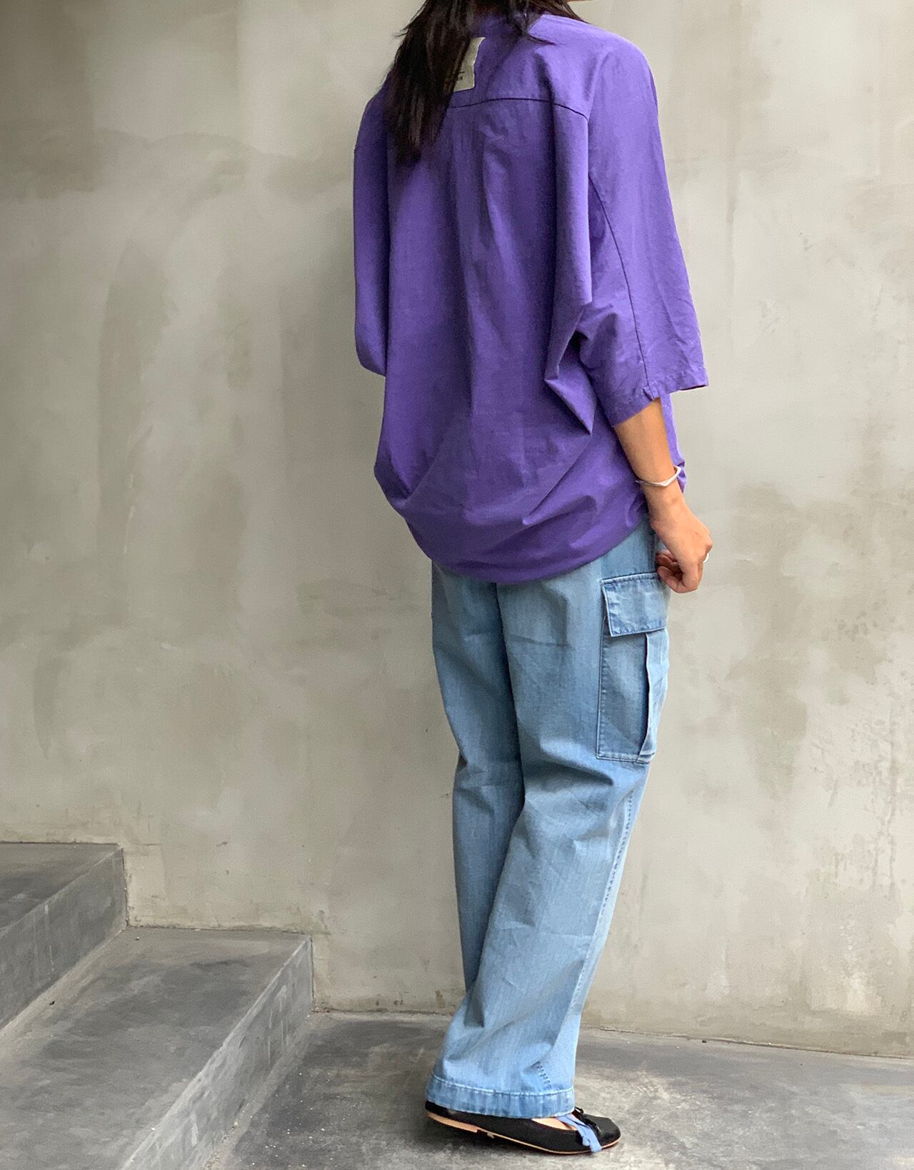 製品染めの商品は独自の色と自然な風合いを持たせるため縫製後に手染めにより加工を施しております。加工製品ですので多少の色ムラ、加工感はございますのでご了承下さい。