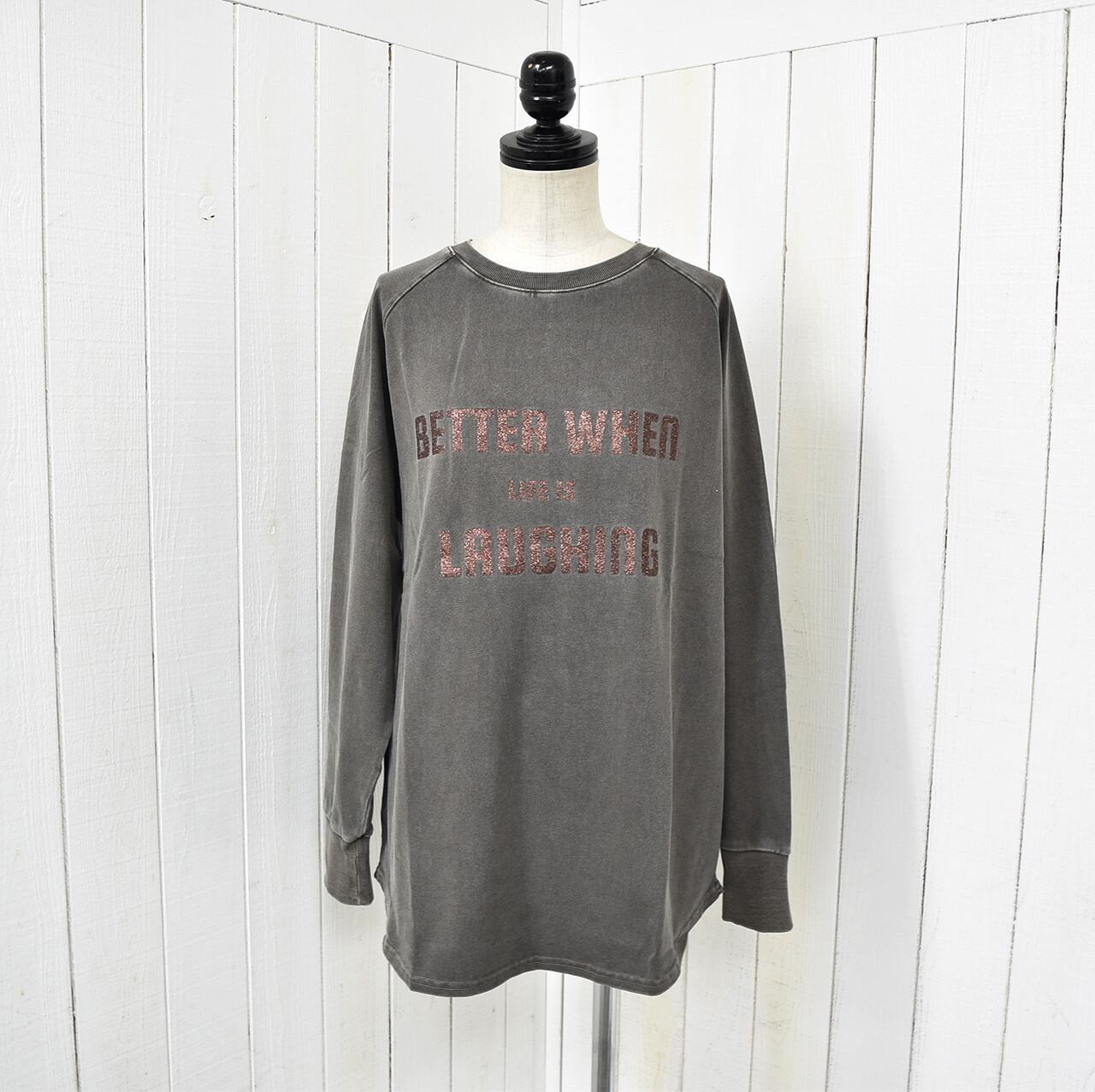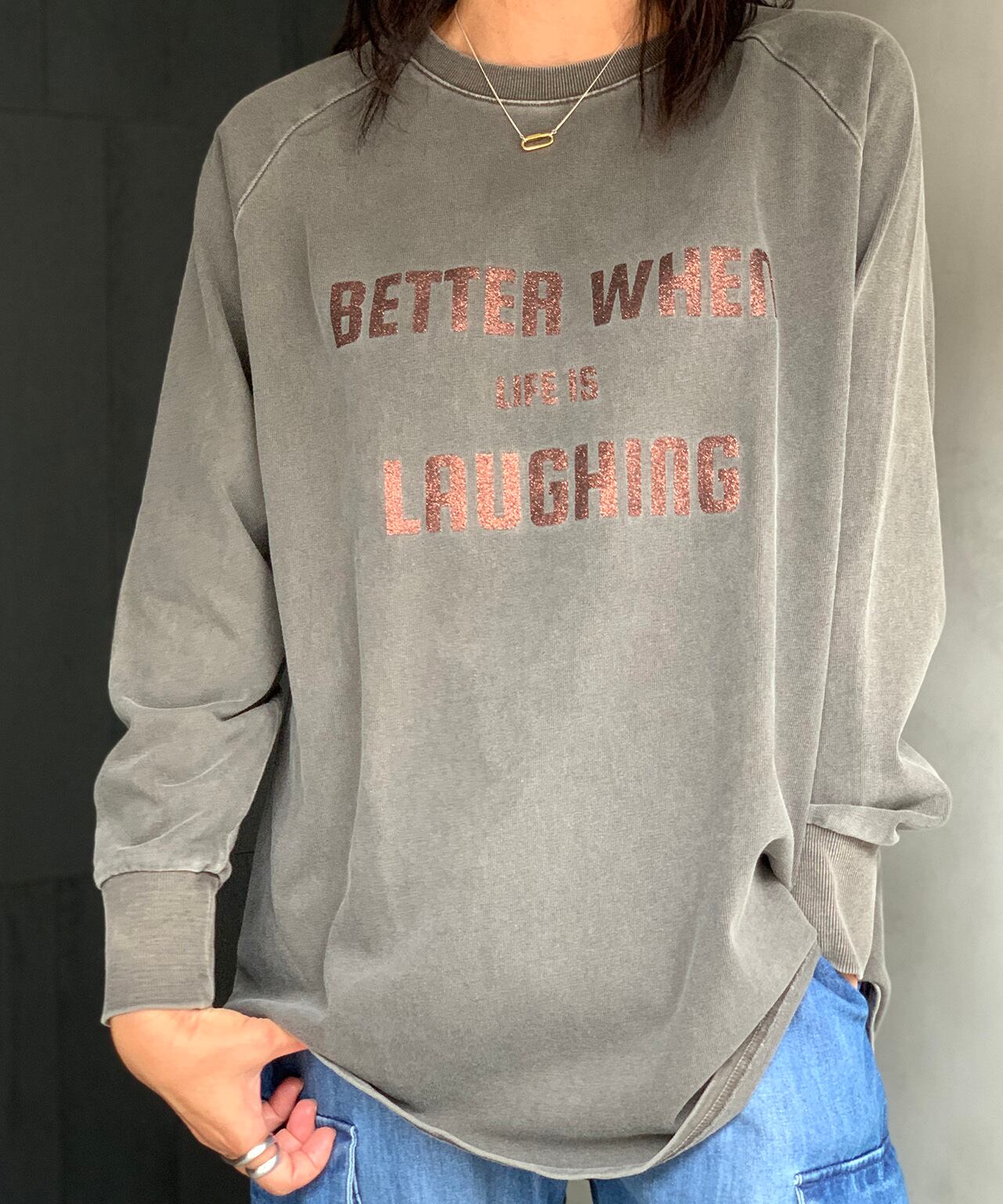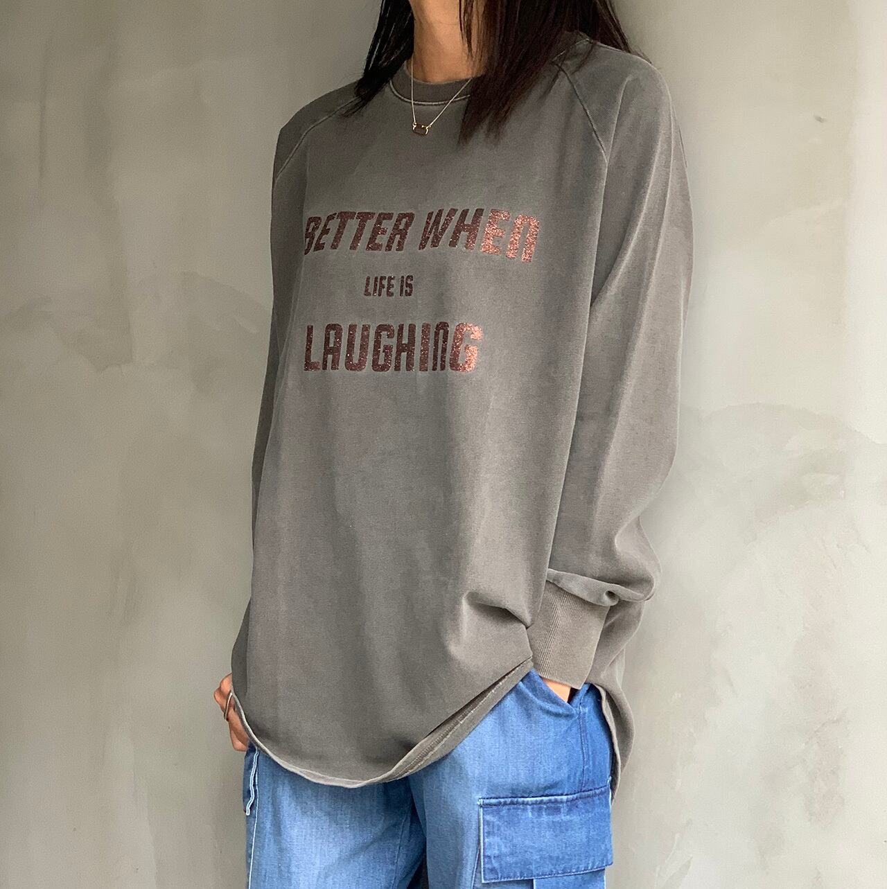 グリッタープリントとピグメントカラーが絶妙な感じのロングスリーブTシャツ。ロンTとトレーナーの間くらいの素材感になります。カラーはサンド、ブラウン、チャコールの3色展開になります。