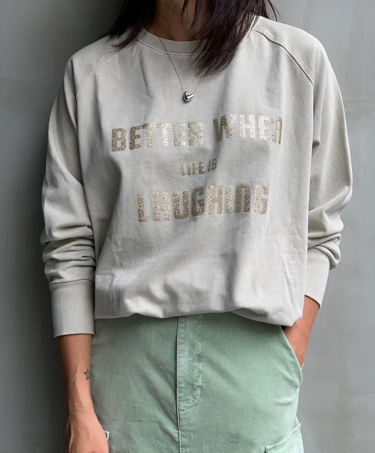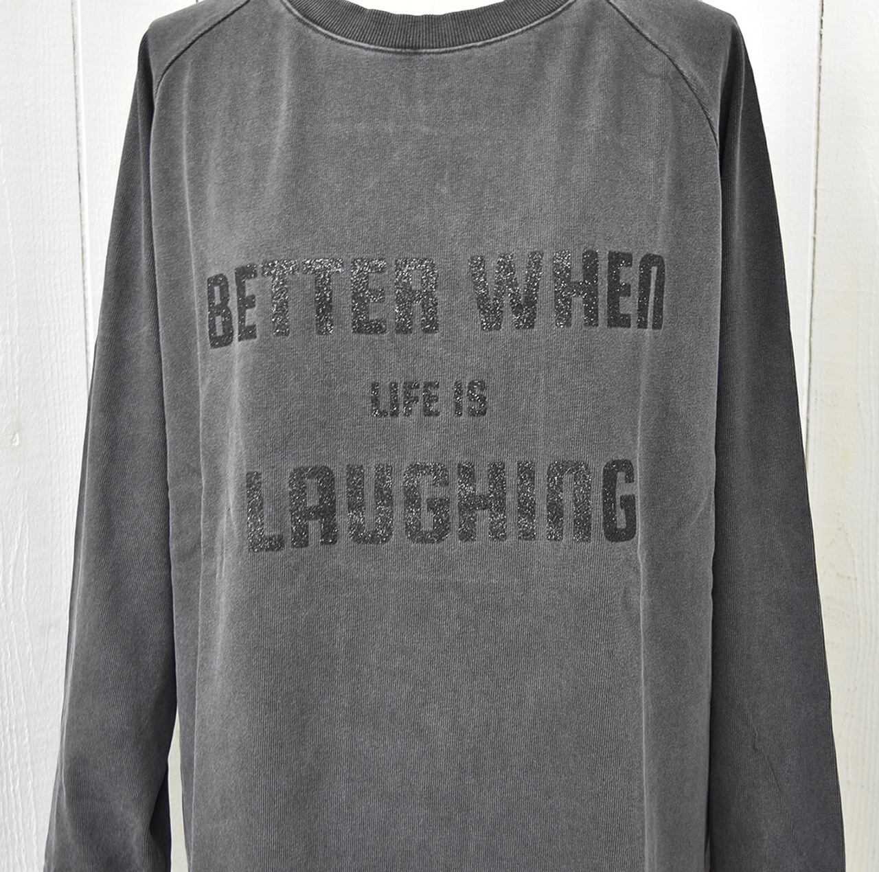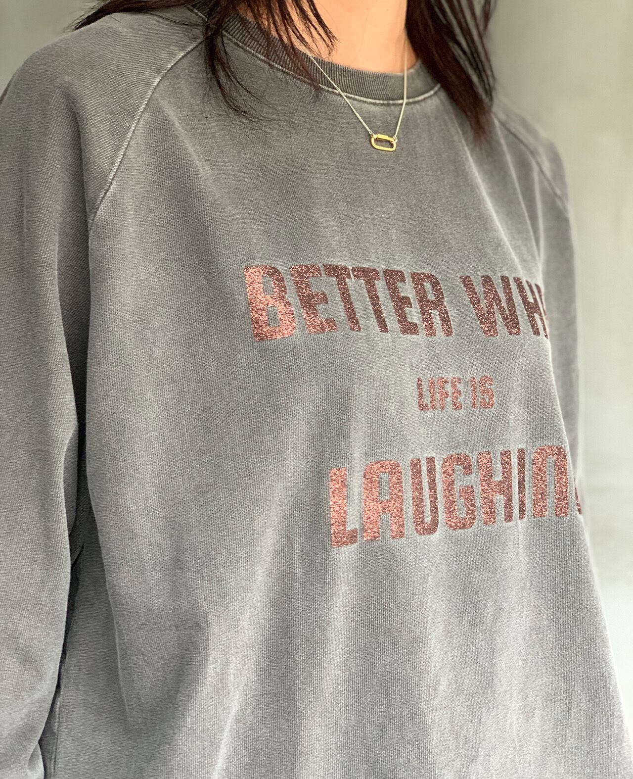 グリッタープリントとピグメントカラーが絶妙な感じのロングスリーブTシャツ。ロンTとトレーナーの間くらいの素材感になります。カラーはサンド、ブラウン、チャコールの3色展開になります。
