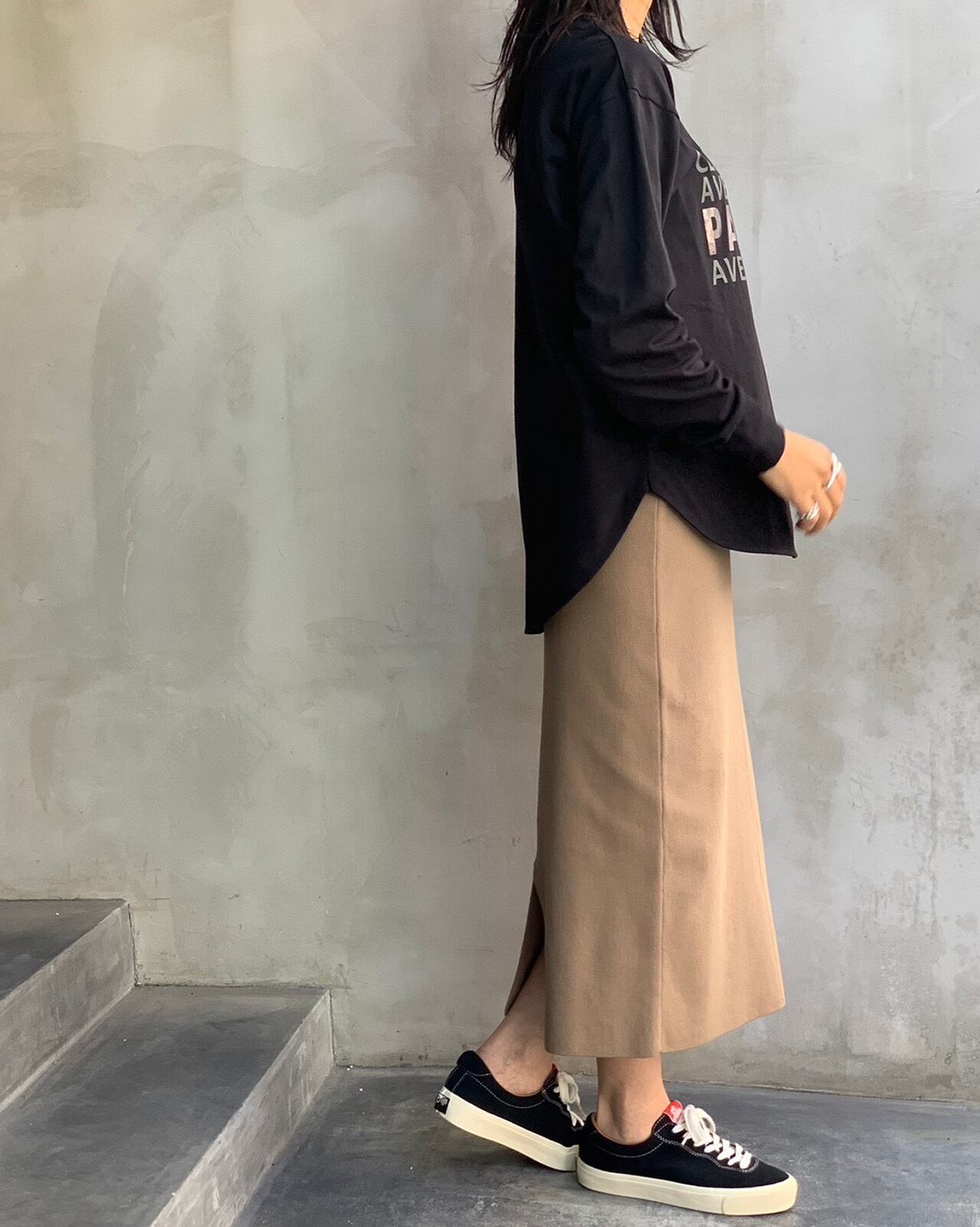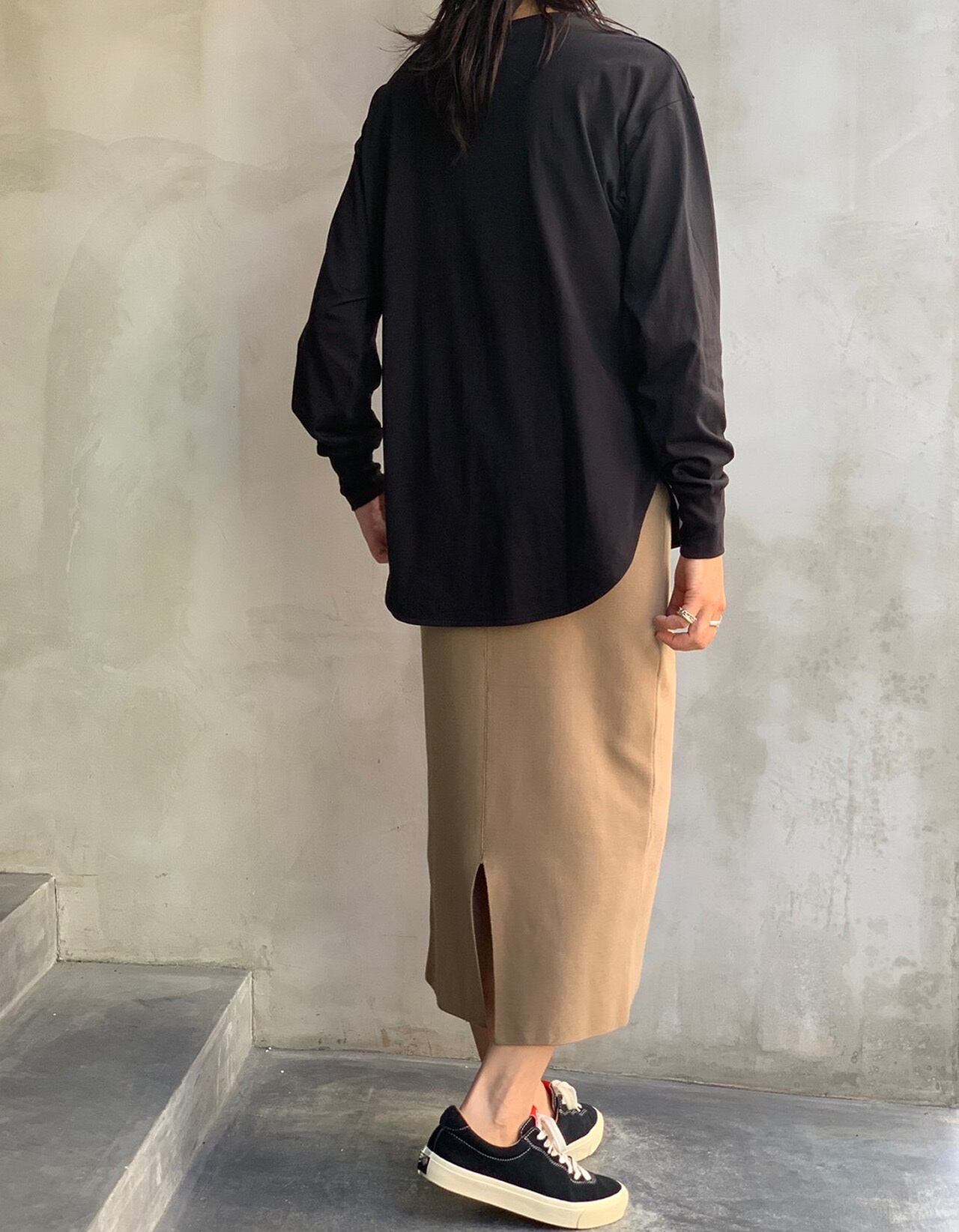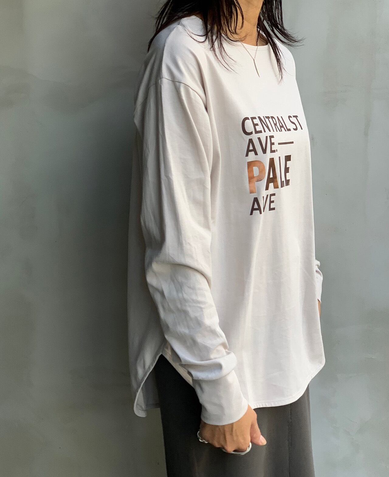 プリントをコンビにしたロングスリーブTシャツ。一枚ではもちろんインナーロンTとしても長くお使いいただけます。カラーはオフ、サンド、ブラックの3色になります。