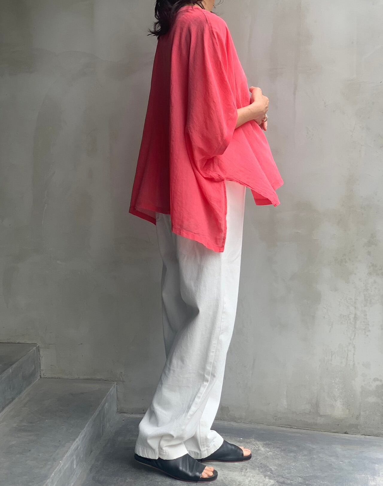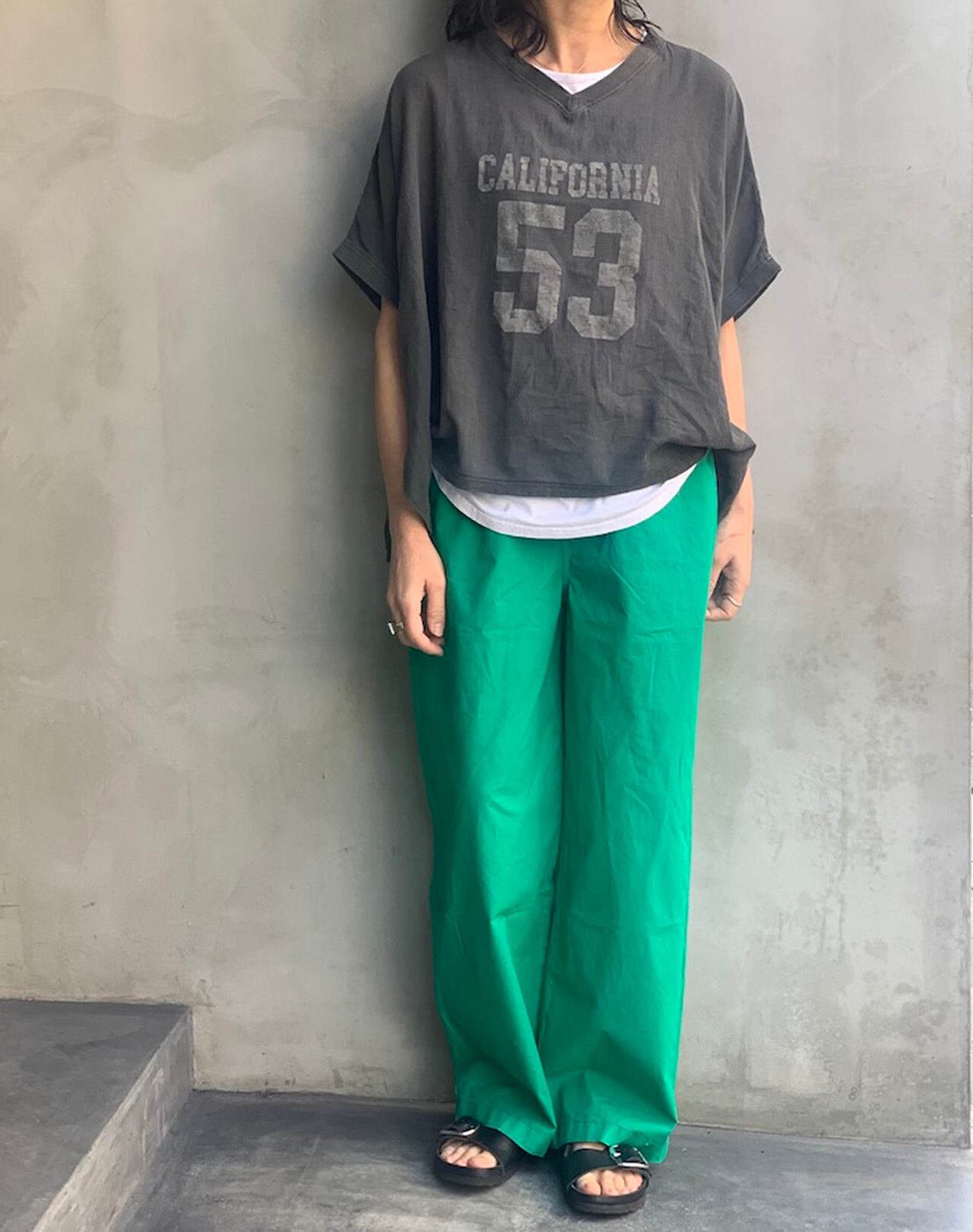 製品染めの商品は独自の色と自然な風合いを持たせるため縫製後に手染めにより加工を施しております。加工製品ですので多少の色ムラ、加工感はございますのでご了承下さい。