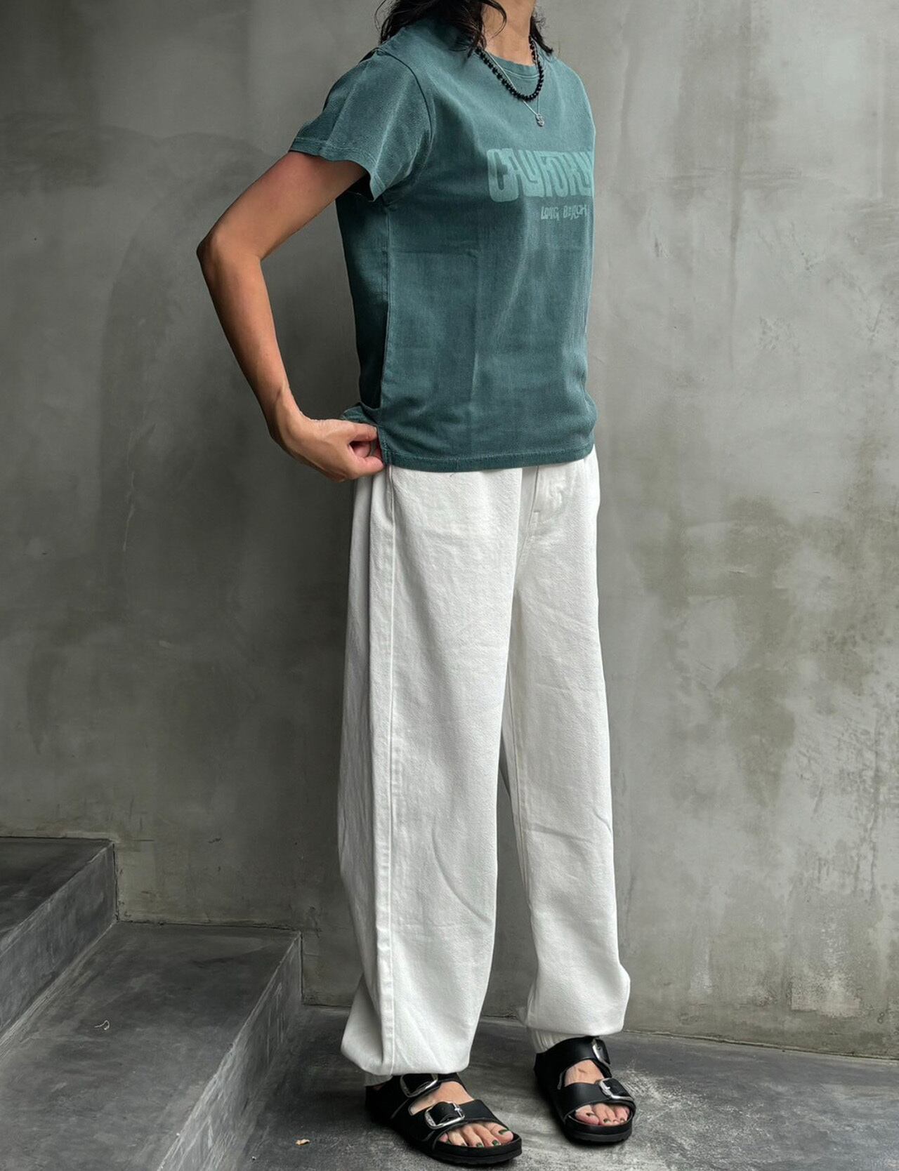 さらっとしたSV天竺を使用したコンパクトロゴTシャツ。普通のTシャツのコットン素材より涼しさを感じれる素材でこれからの暑い季節にオススメです。カラーはオフベージュ・ピンク・ブルーグリーン・チャコール・の4色展開になります。