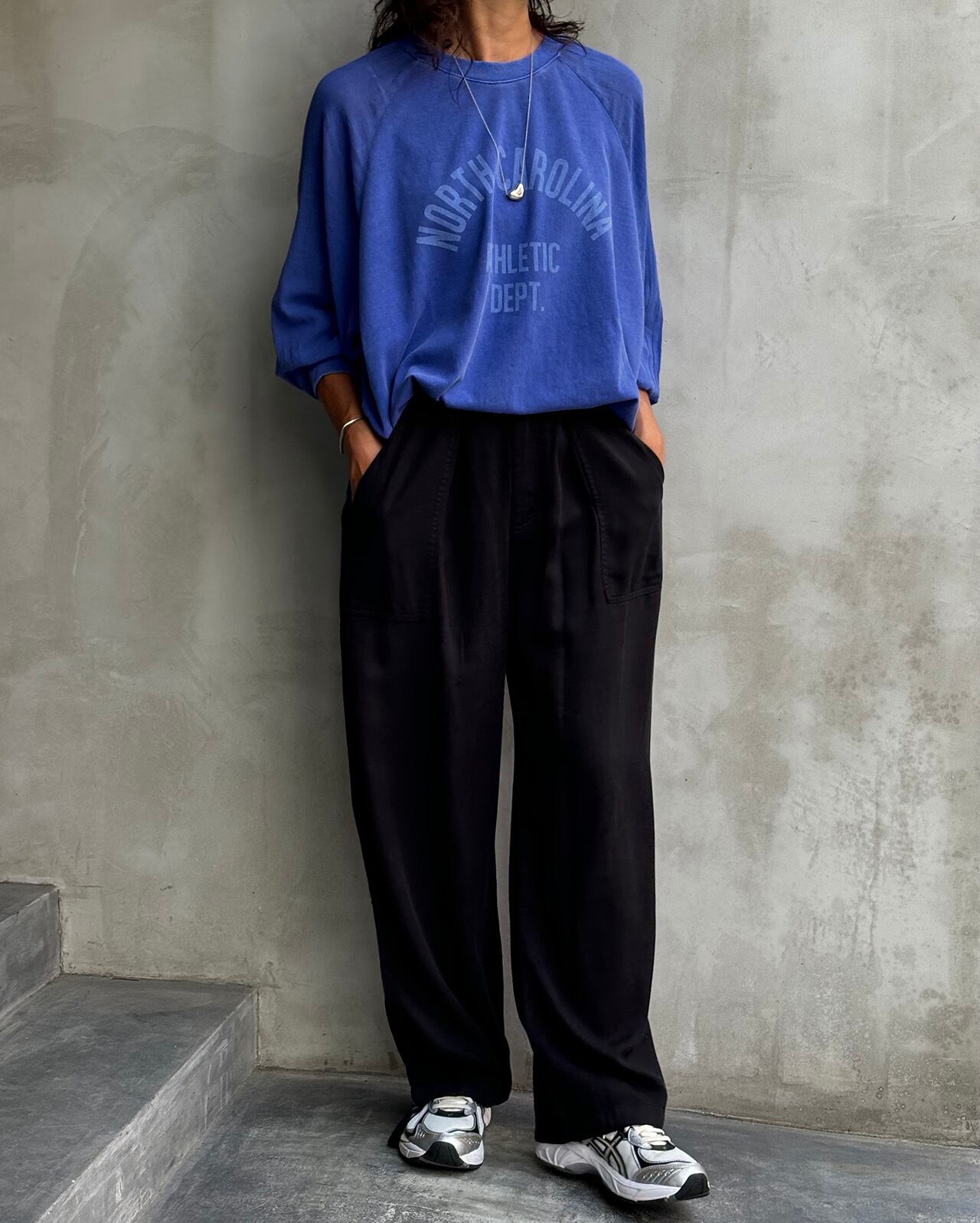 製品染めの商品は独自の色と自然な風合いを持たせるため縫製後に手染めにより加工を施しております。加工製品ですので多少の色ムラ、加工感はございますのでご了承下さい。