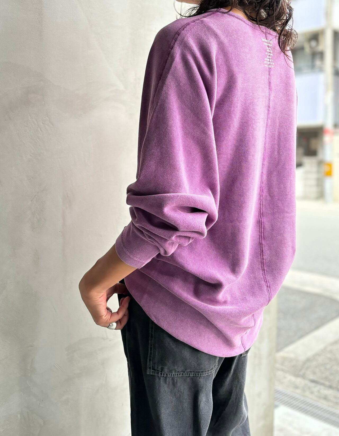 製品染めの商品は独自の色と自然な風合いを持たせるため縫製後に手染めにより加工を施しております。加工製品ですので多少の色ムラ、加工感はございますのでご了承下さい。