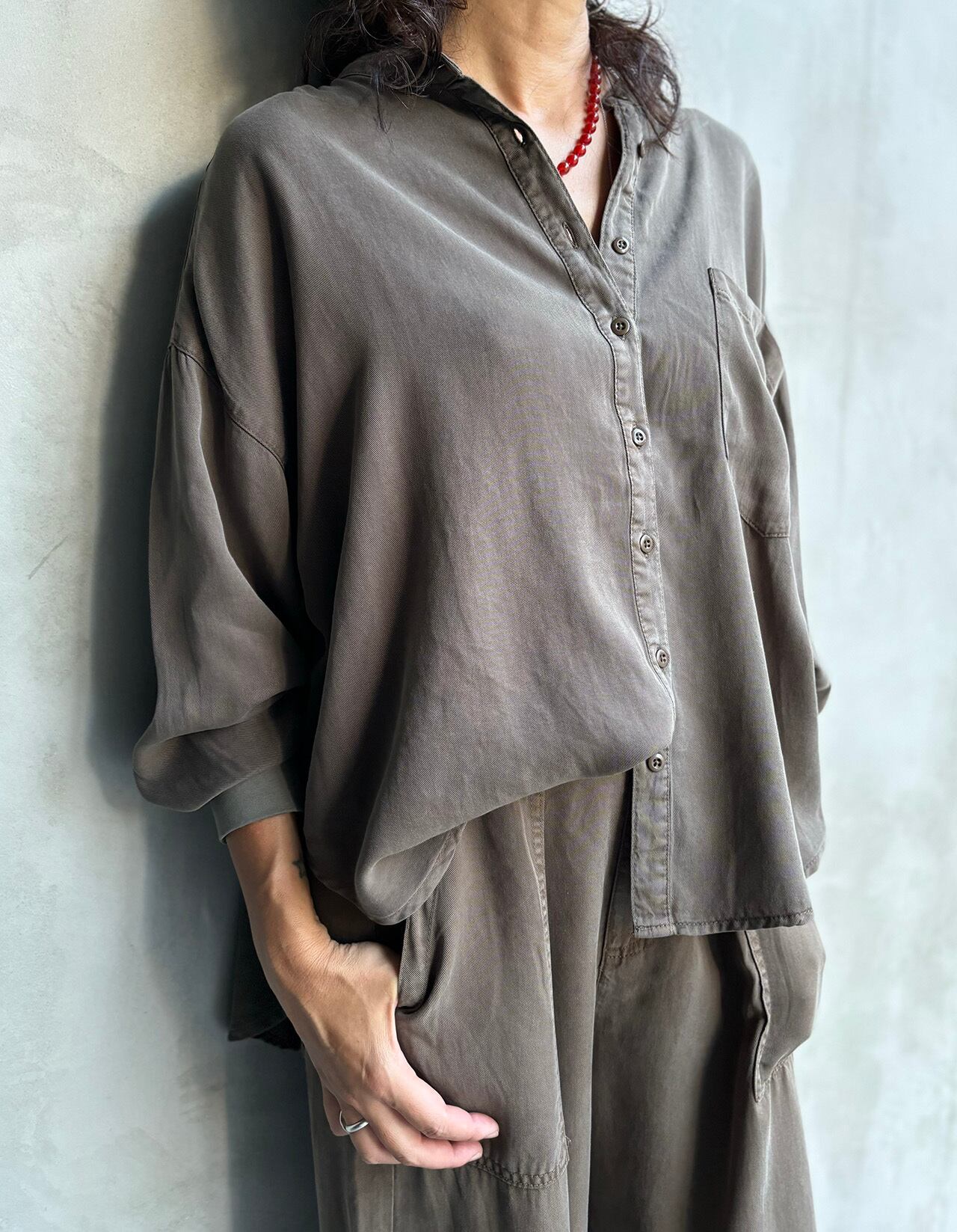 これからの季節にシャツとしても羽織りとしても重宝するテンセルシャツ。ご好評の袖口はリブになっています。カラーはインディゴ、ブラウン、ブラックの3色になります。